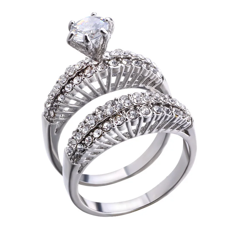 2 шт.компл. роскошные свадебные кольца с кристаллами циркона для женщин, очаровательные обручальные кольца, комплект ювелирных изделий, подарки