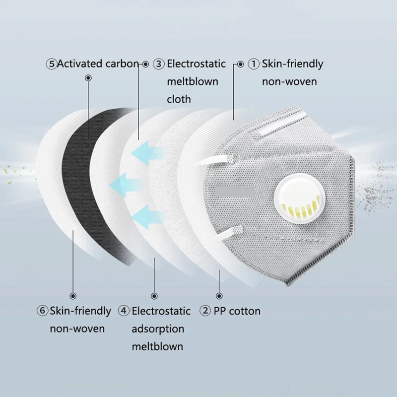 KN95 FFP2 FFP3 маска для лица анти PM2.5 Пылезащитная маска с клапаном из активированного угля без подклада корабль шесть слоев защиты