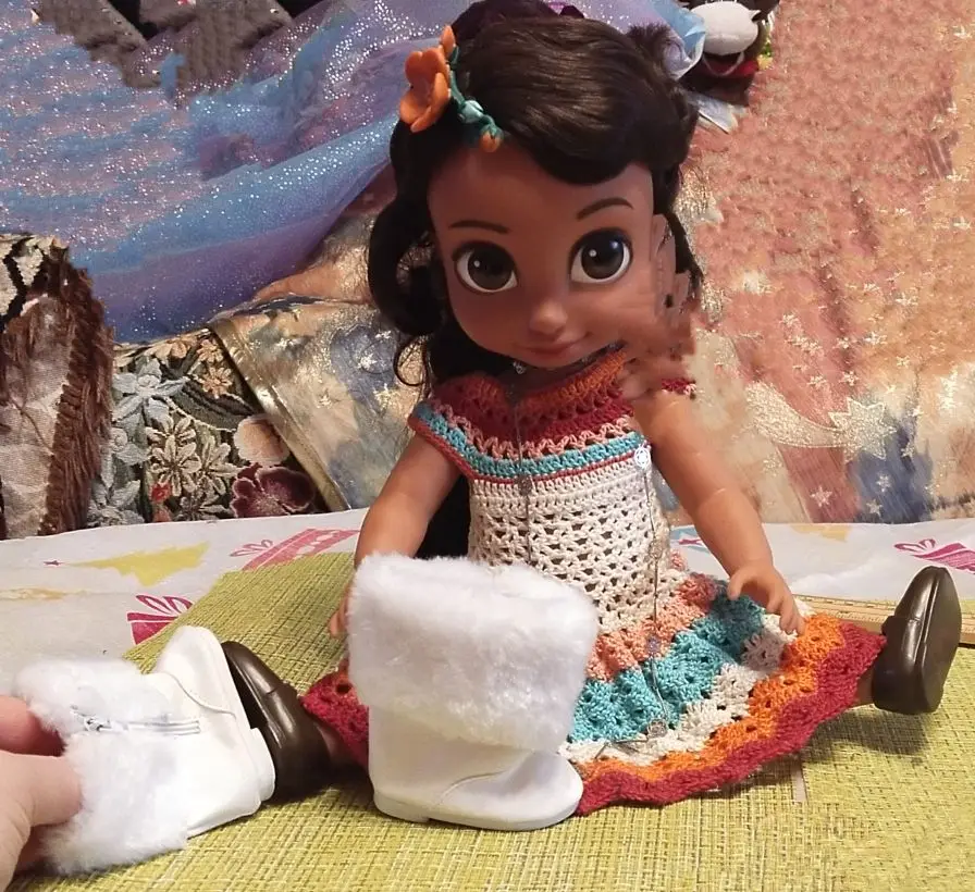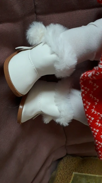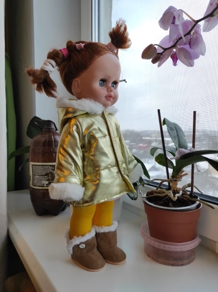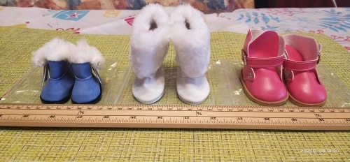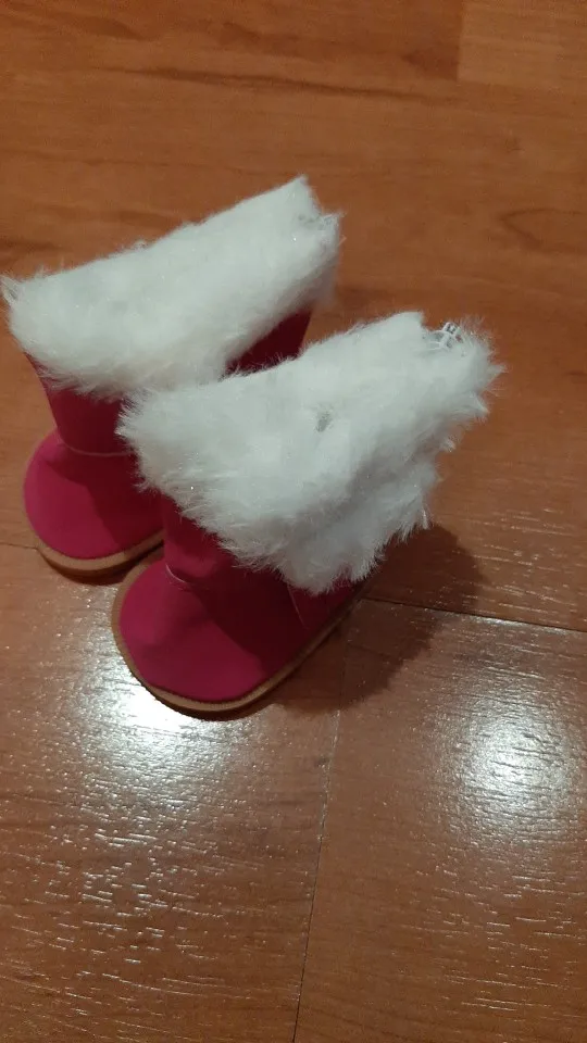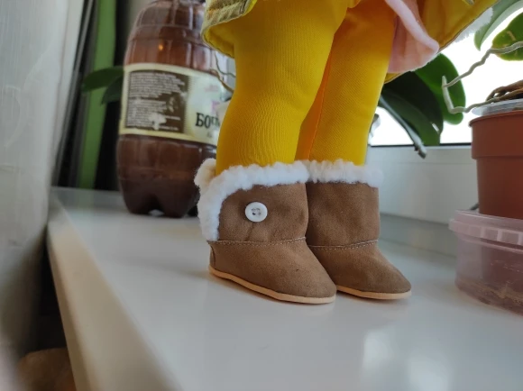 Сапожки симпатичные, но в описании написано,что они плюшевые,а это ни так. Они дерматиновые гладкие, но это не важно. Заказывала белые пришли розовые, но и это не критично. На Диснеек 40 см, они великоваты, одела сверху на обувь куклы. То есть кукла в своих туфельках,а поверх одеты сапожки. На другую куклу они тоже великоваты, но не сильно. Сами сапожки пошиты акуратно, я довольна. Посылка пришла в течении месяца, отправлена была сразу. Магазином довольна буду заказывать ещё.