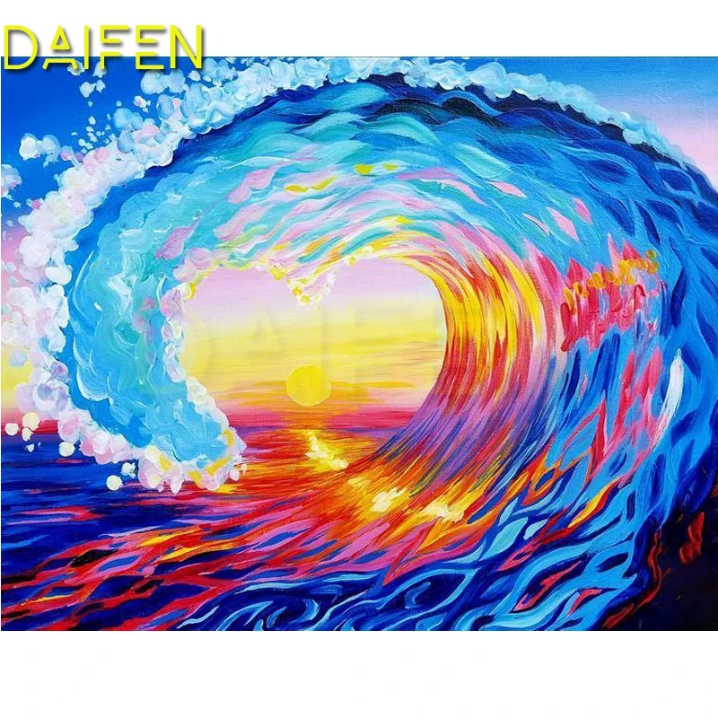 Алмазная мозаика волны океана, полноразмерная картина из круглых страз, вышивка крестиком, 5DDIY