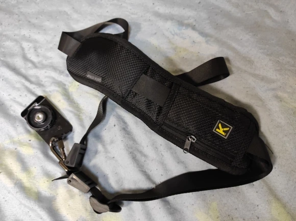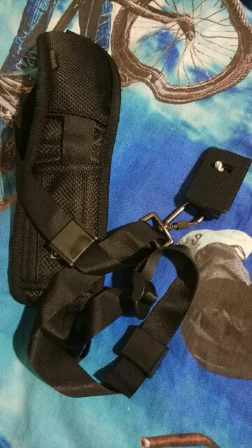 Неплохой ремень. Площадка из металла и резьба есть в гайке, можно пятку от штатива прикрутить.