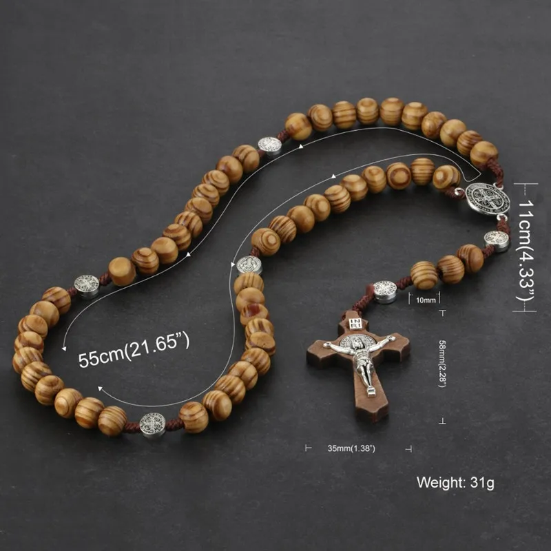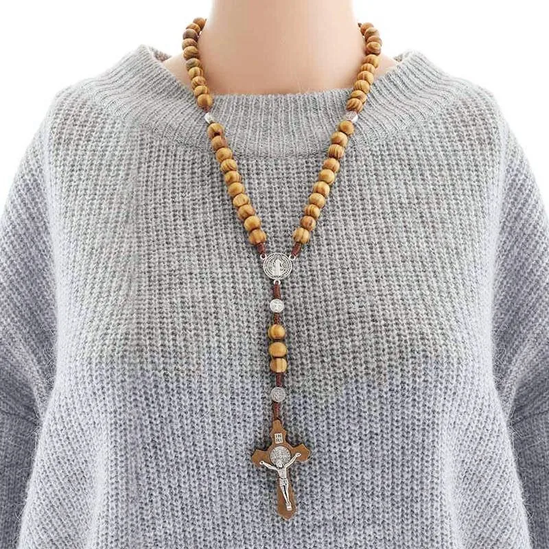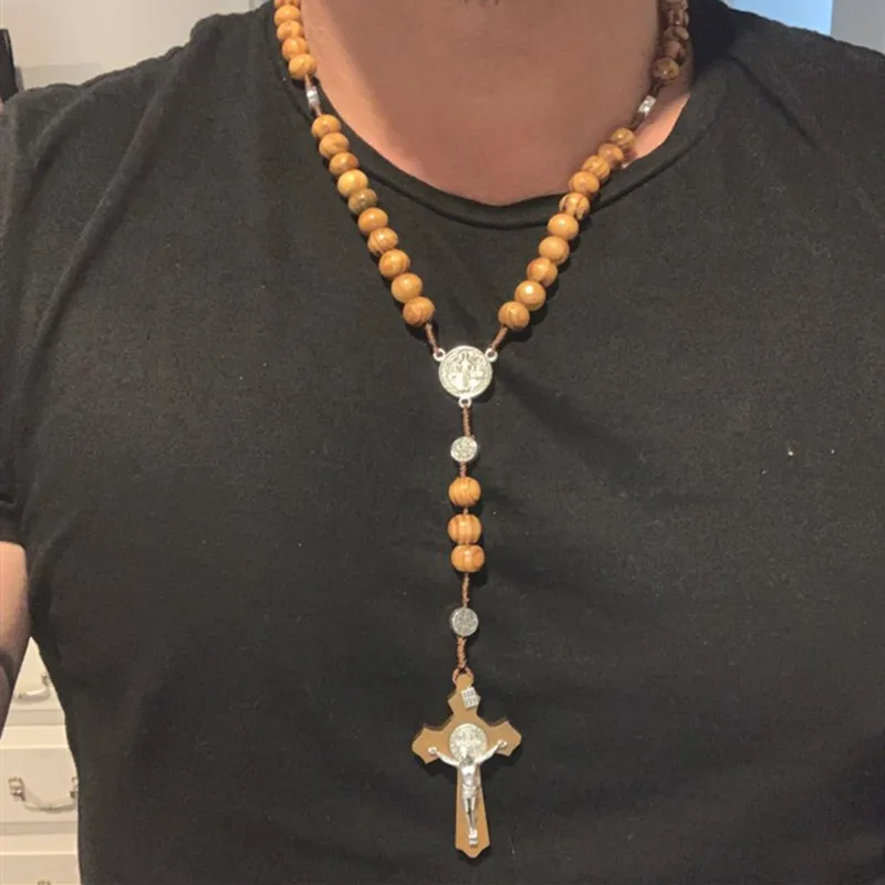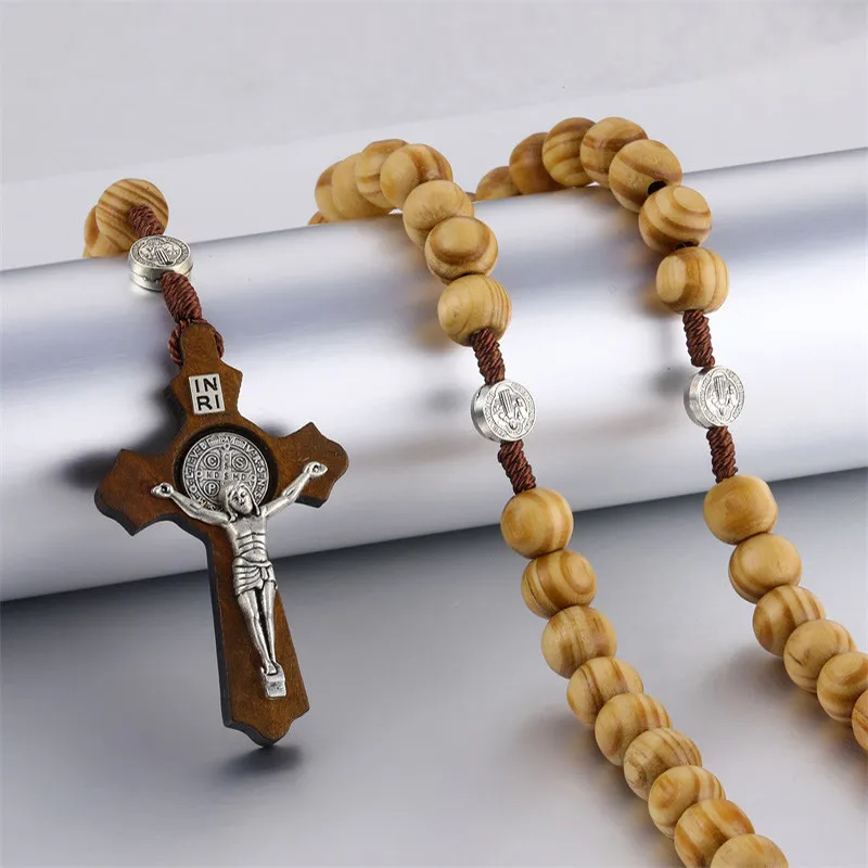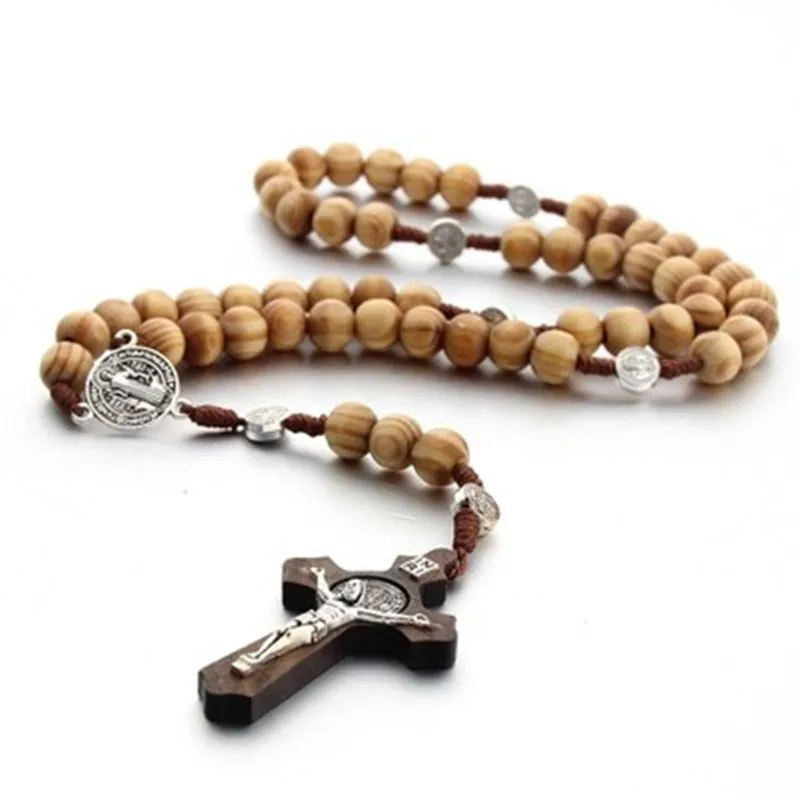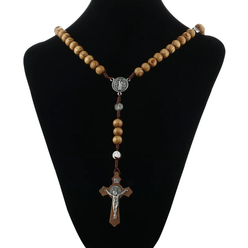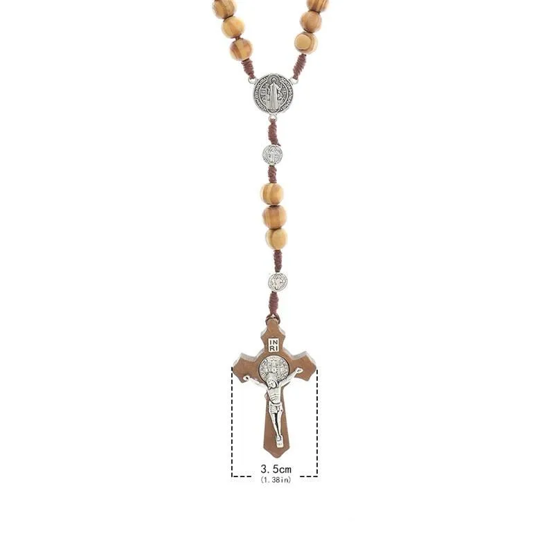 Круглые орден Святого Бенедикта ручной работы, антикварные деревянные четки, подвеска-крест для женщин, религиозная Подвеска "Иисус", ювелирные изделия, подарки матери