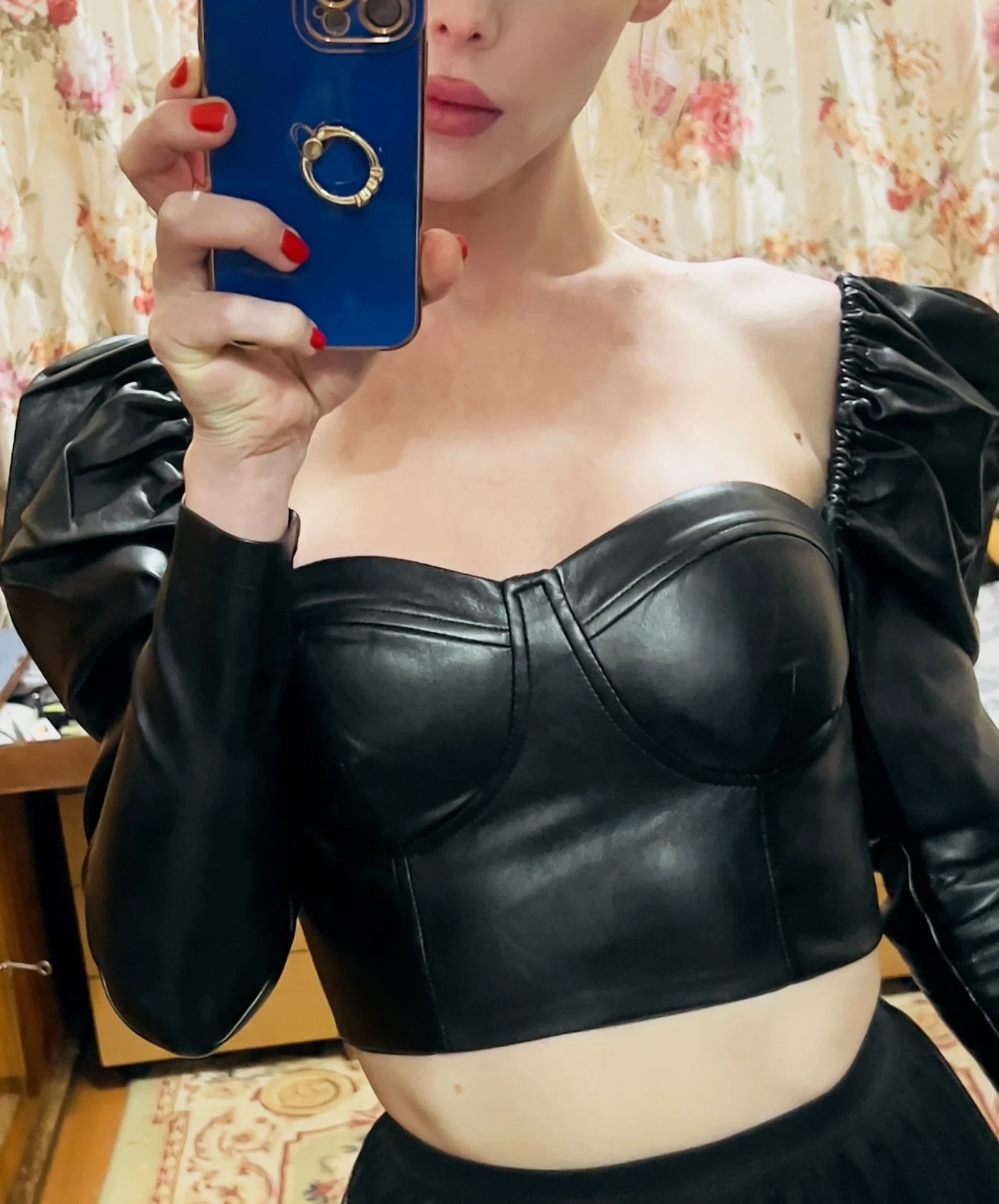Топ в Москву пришёл быстро, всего за 10 дней. Качество изумительное, очень плотный кожзам. Размер S мне чутка маловат в руках, манжеты очень узкие) Жалко, конечно, что не было размера М, а L заказать побоялась, чтобы чашечки не висели. В любом случае покупкой довольна, и буду носить с удовольствием.