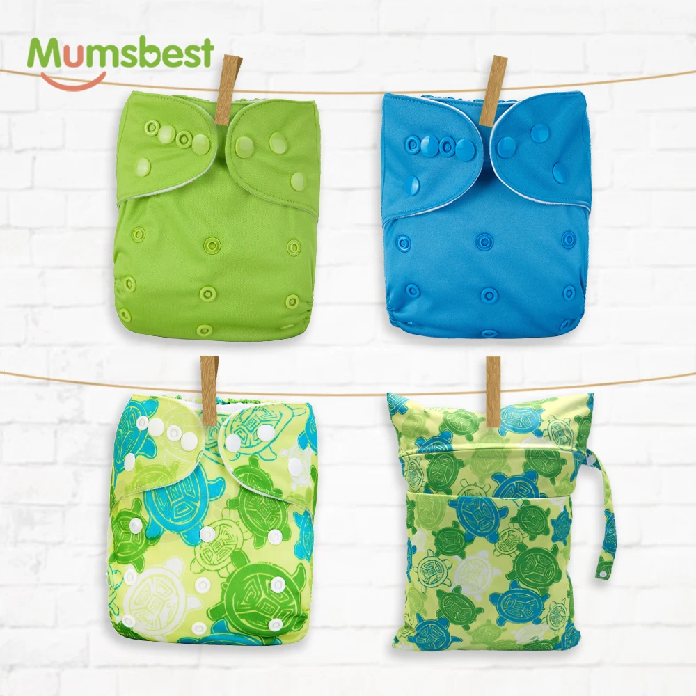 Многоразовые тканевые подгузники Mumsbest, 4 шт.упак., экологичные детские подгузники с 30*40 влагозащищенными мешками, водонепроницаемые экологически чистые подгузники