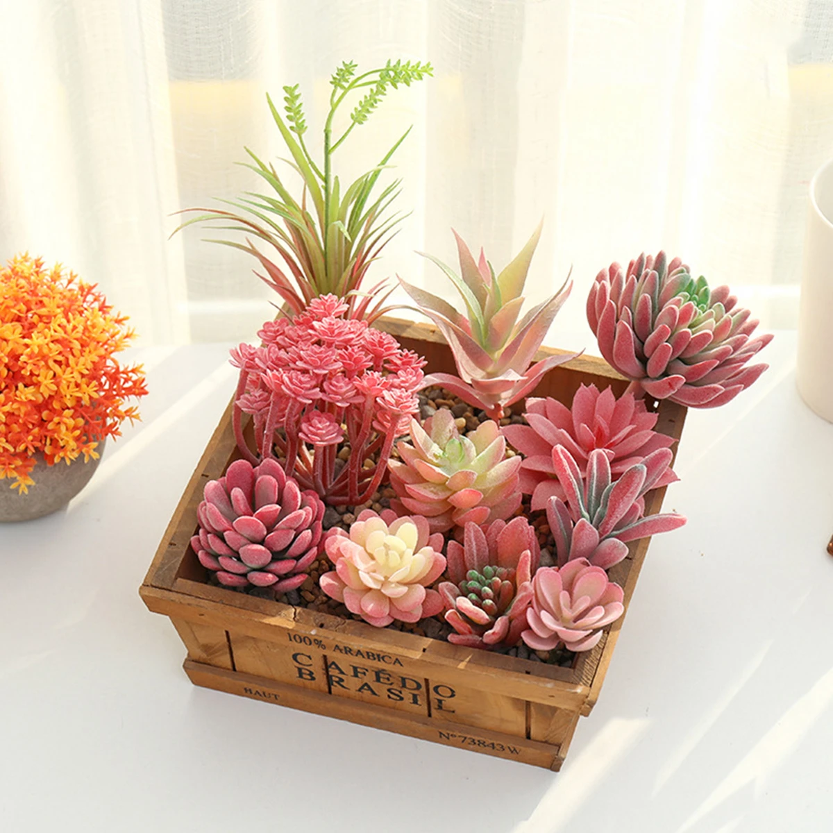 12-24 шт Искусственные суккуленты стекаются растения мини искусственный суккулент без горшков искусственный садовый декор имитация бонсай для рабочего стола украшения