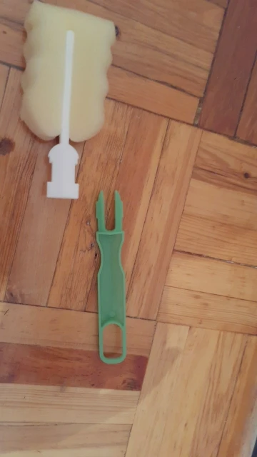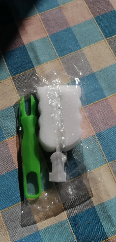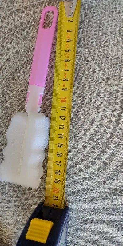 Хорошая небольшая губка с пластиковой съемной ручкой для чистки бутылок и чашек, выполнена довольно качественно, описанию соответствует, размер 20 x 4.5 см. Доставили за 25 дней, без отслеживания, заказом доволен, товар и продавца рекомендую.