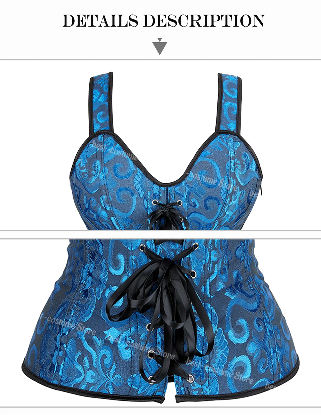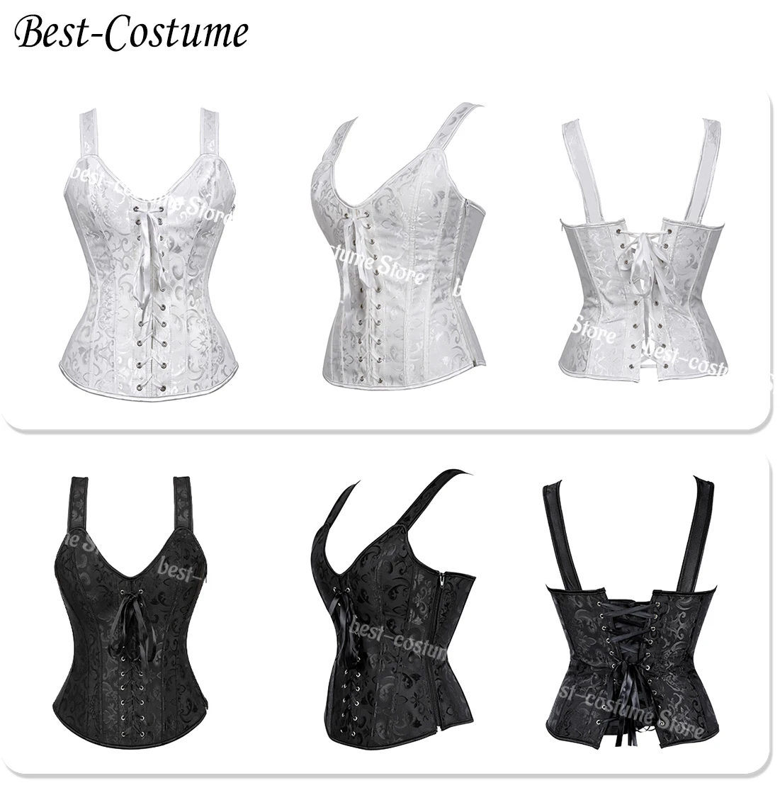 Женский сексуальный корсет имеет 5 стилей. Белый корсет-топ чистый и придает ощущение священной элегантности. Черный корсет, сексуальный топ для нижнего белья, с чувством загадочности. Корсеты бежевого цвета элегантные и достойные. Зеленый корсет-бюстье свежий, а черно-синие топы-бюстье элегантные и благородные. Независимо от того, какой корсет вы выберете, вы можете показать свою сексуальность и красоту.