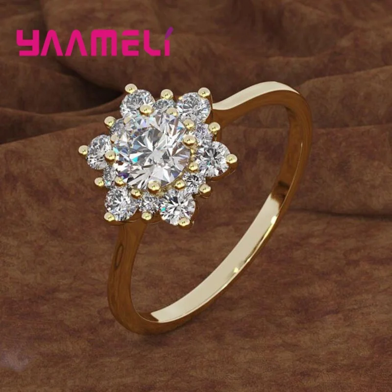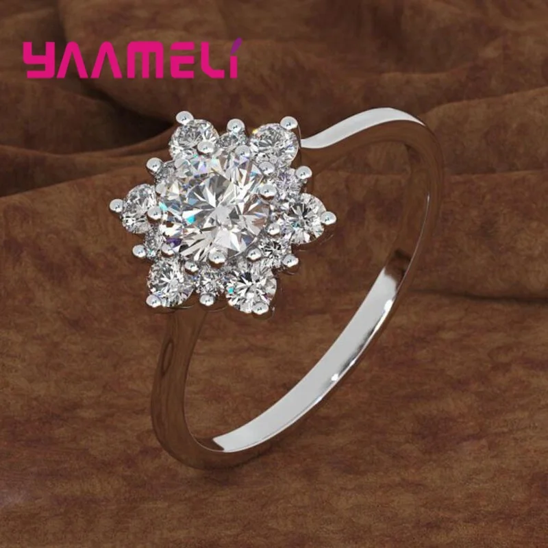 Модные 925 пробы серебряные кольца для женщин и девушек элегантные кольца со снежинками с камнем блестящие ювелирные изделия подарки кольца