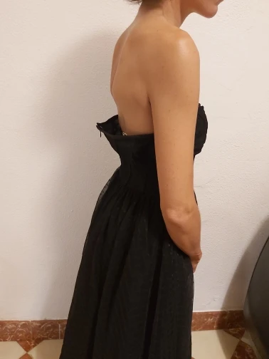 Черные вечерние платья в горошек 2021, вечернее платье средней длин...