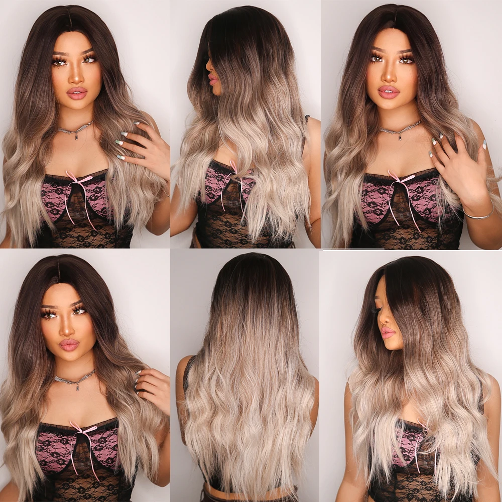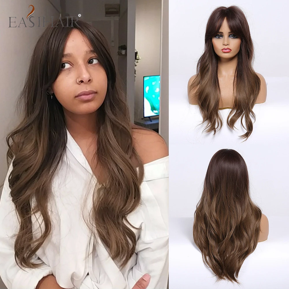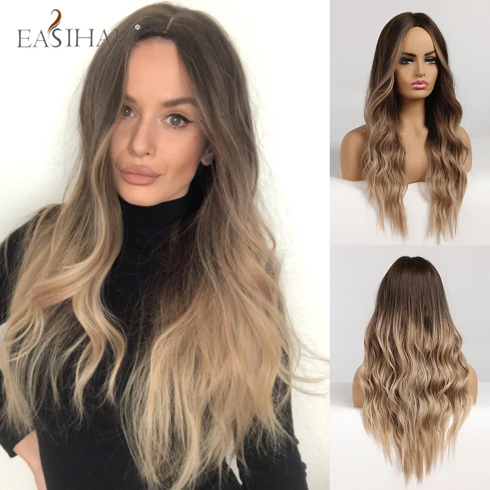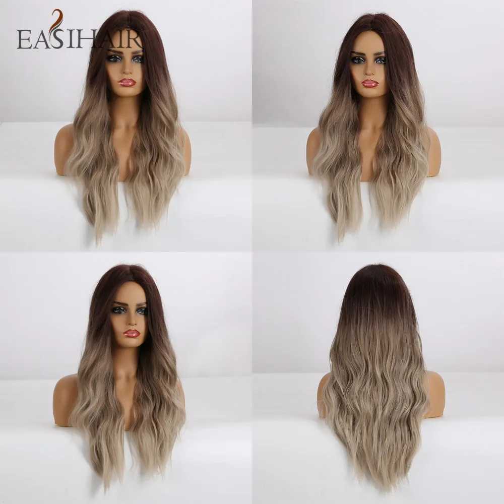 EASIHAIR коричневый Омбре пепельно коричневый волнистые синтетические парики средняя часть термостойкие натуральные длинные волосы для женщин повседневные Косплей Вечерние