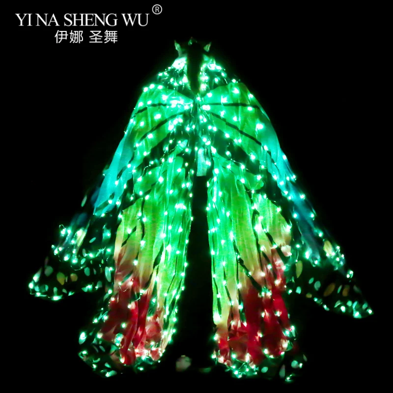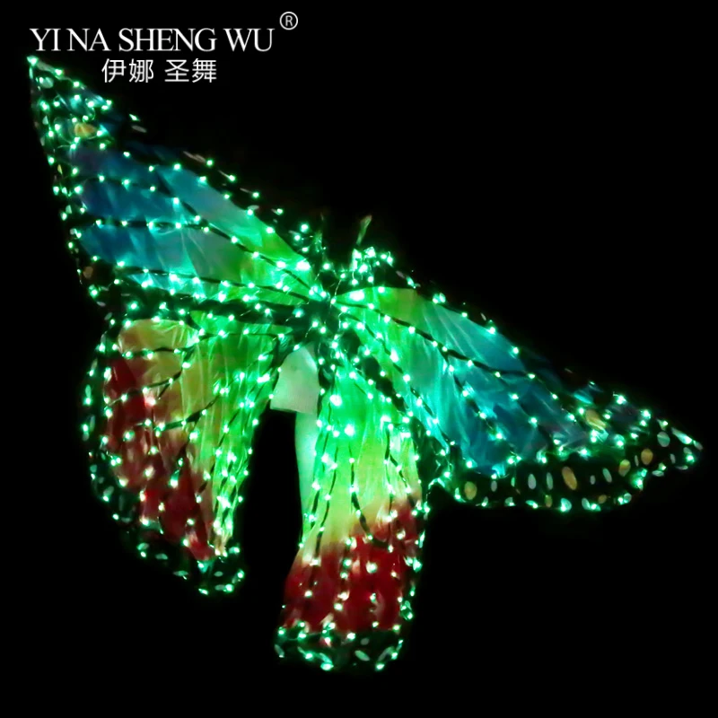 Светодиодные Крылья для танца живота для девочек, LED плащ для Хэллоуина с крыльями бабочка, аксессуары для танцевальных шоу, крылья без палочек
