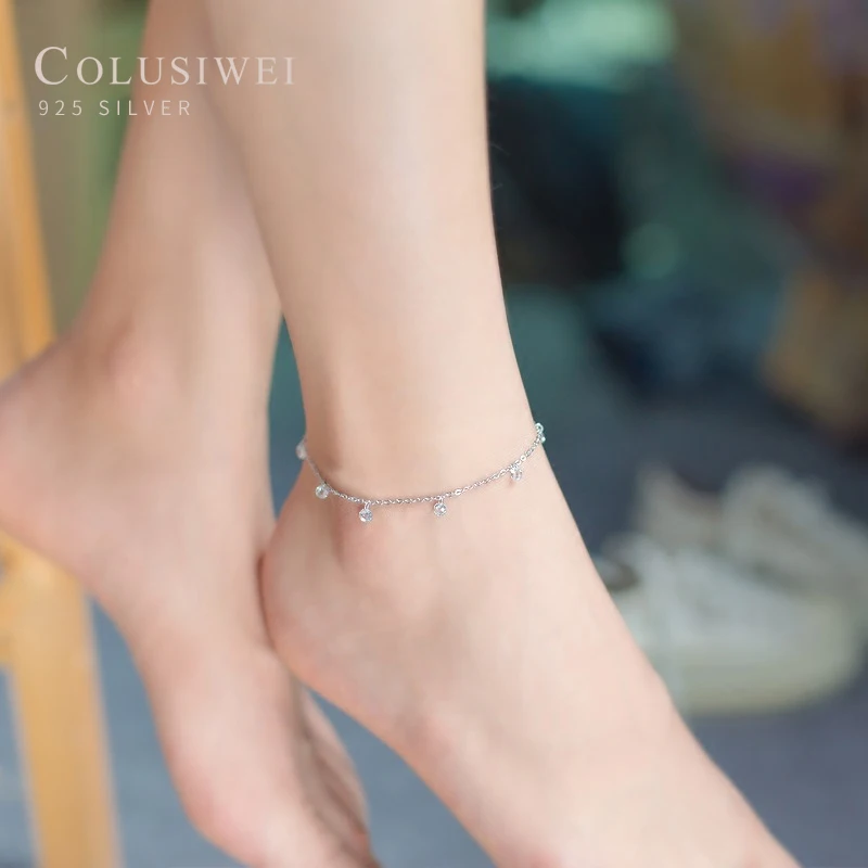 Colusiwei Серебряный Бусы Браслеты Аутентичные 925 стерлингового серебра модное летнее ноги ювелирный браслет для лодыжки женские Bijoux (украшения своими руками)
