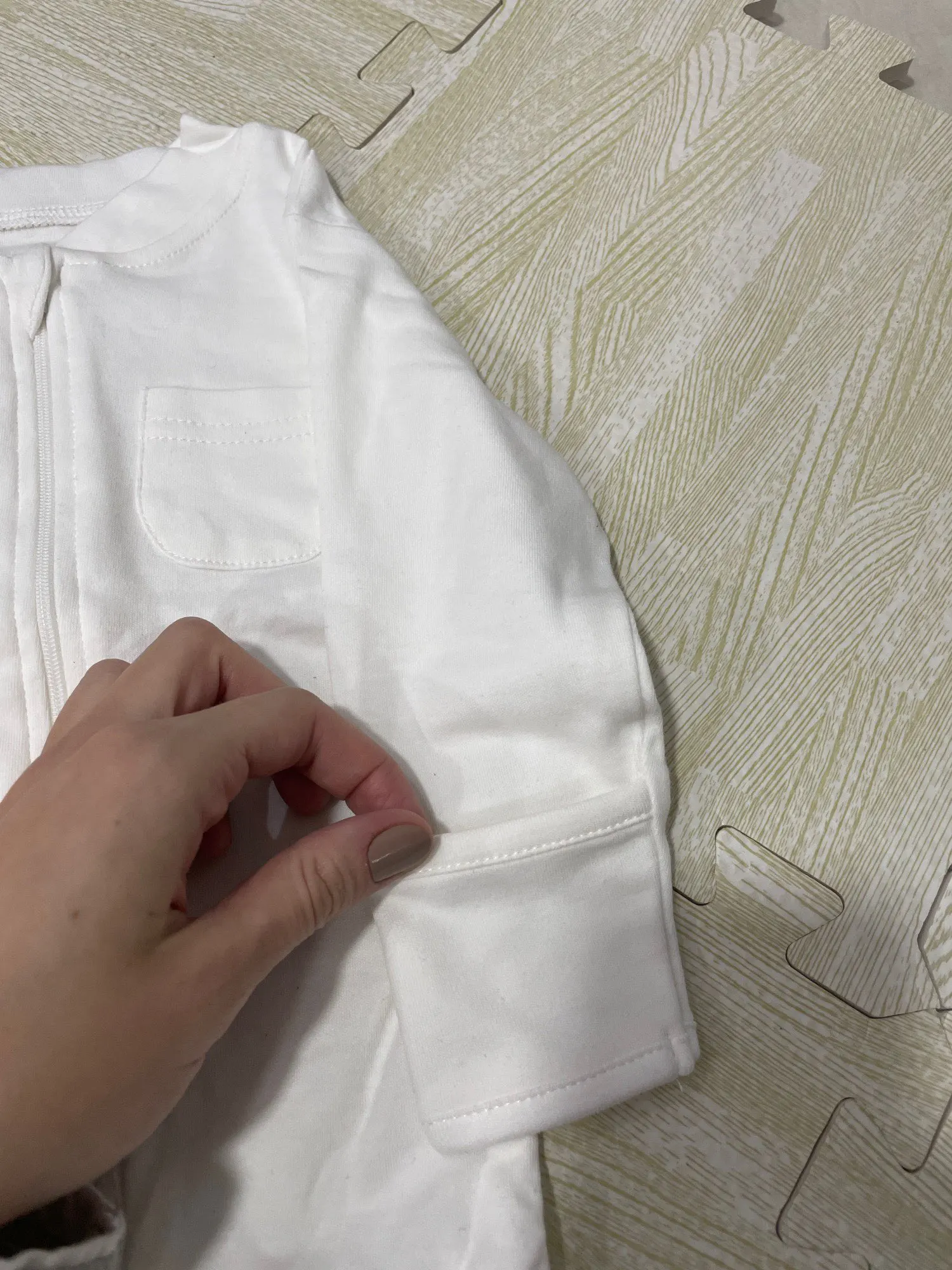 Комбинезон с застёжкой на молнии, это вещь! Также удобно, что ручки можно закрыть, актуально в холодную погоду. Не совсем удобно расположена застёжка, немного набок, но это дело привычки, я думаю.