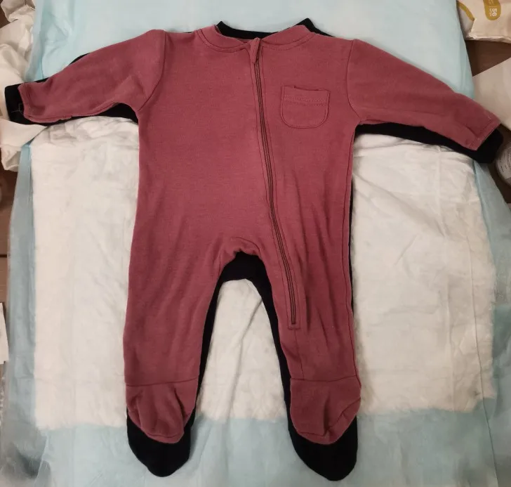 Приятный материал, спасибо за отзывы, большой размер, заказанный для нашего новорожденного в СПЭ (aug'21). 4 упаковки на размер 6 месяцев. Равен 3 месяцу, но также заказал!