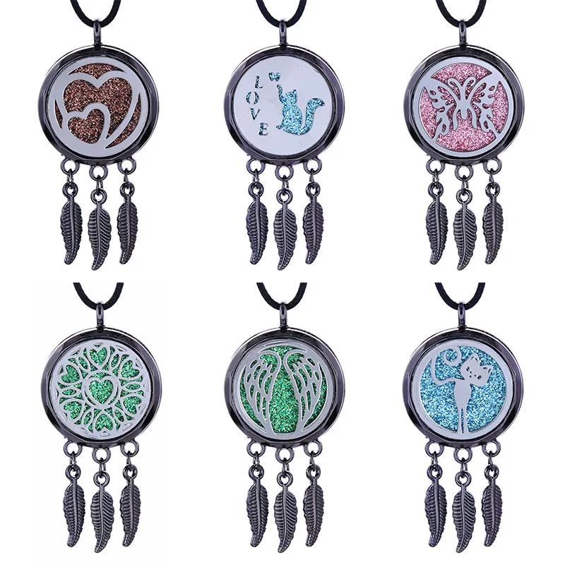 1 шт. ожерелье с аромадиффузором черное перо кулон Духи Эфирное масло ожерелье для ароматерапии с 10 шт. подушечек
