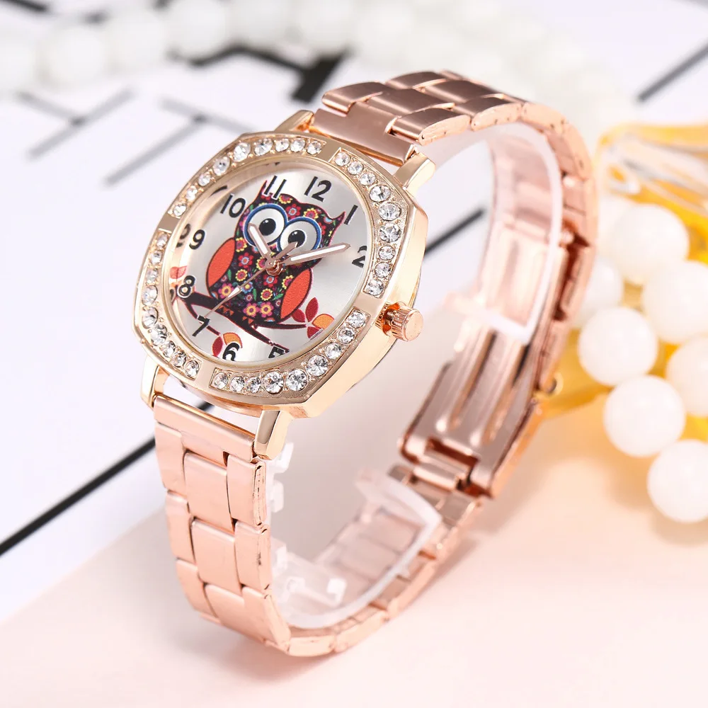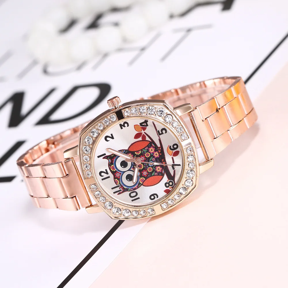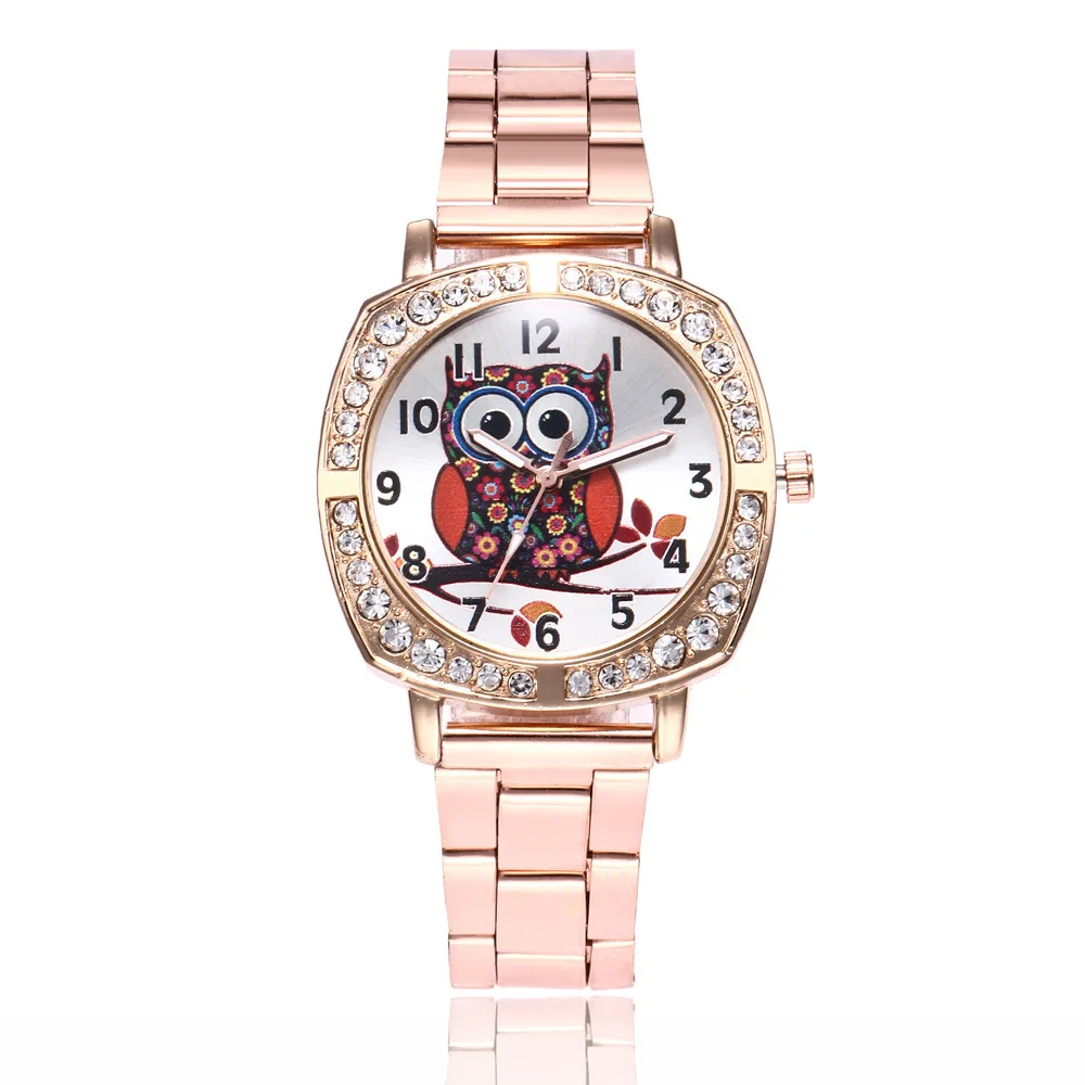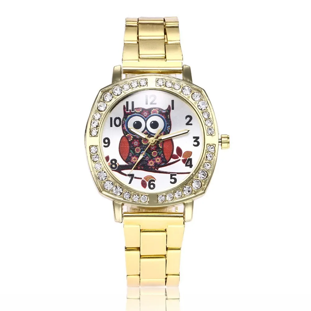 Сова Золотые стальные часы браслет дамские стальные часы модные женские квадратные кварцевые часы горячая Распродажа Relogio Feminino