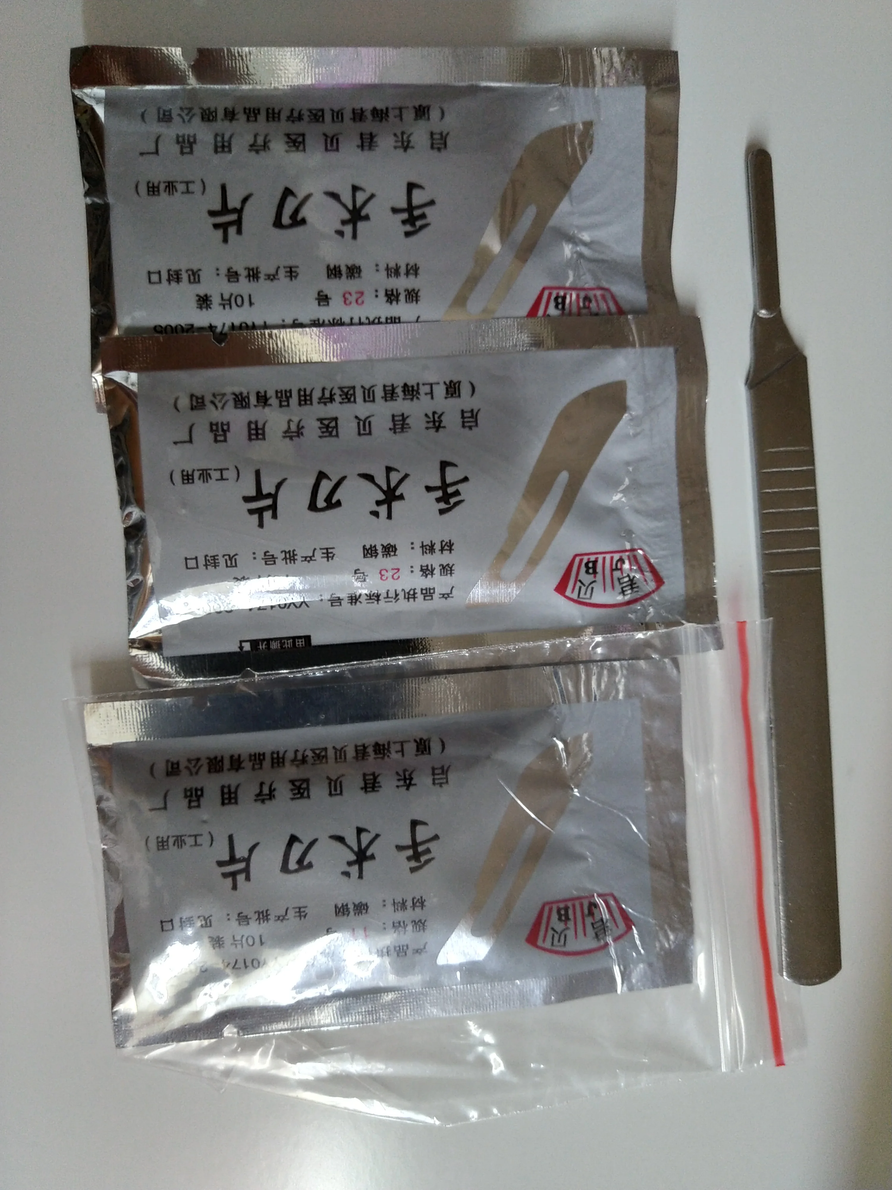 Приехали быстро в сборной посылке, на стале нет никакой маркировки, заточка не медицинская , для технических нужд подходит ну и дешево!