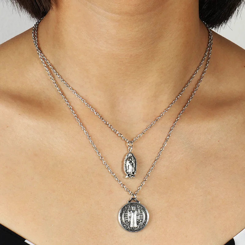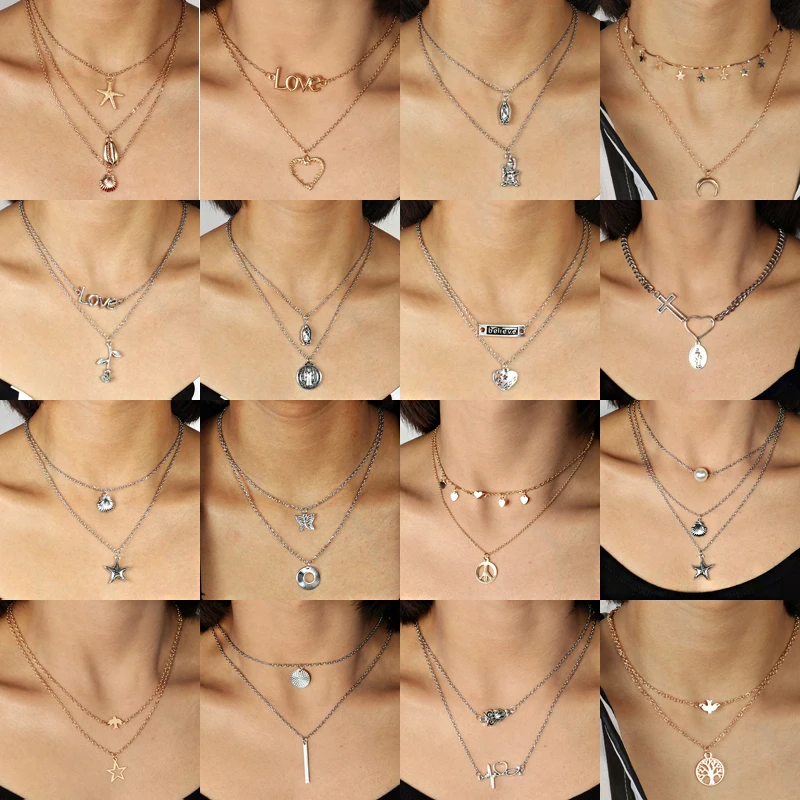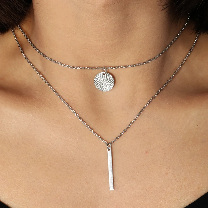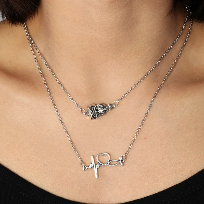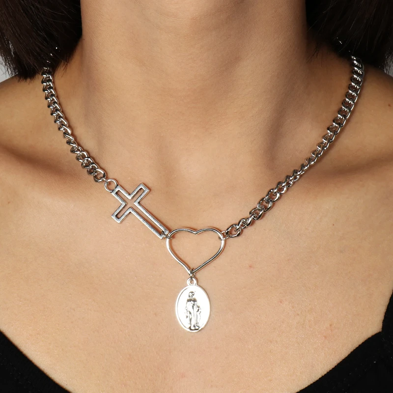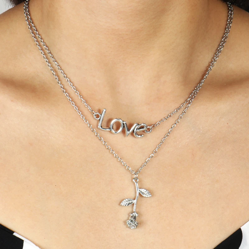 Горячая Распродажа, подвеска-колье, серебряный цвет, подвеска-крест в форме сердца, ожерелья для женщин, двухслойная бижутерия, подарки на вечеринку, аксессуары