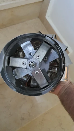 И так. Коробка помята, немного и вытежка деформирована, кстати ещё и вскрыта(видимо на томожне), по фото видно. но это не беда вопрос зачем такой большой зазор между "ротором" и "статором" аж в 1,5 пальца. На 100й вытяжки маленький зазор. При ровных руках реально убирается биение и неровности. Советую всем.