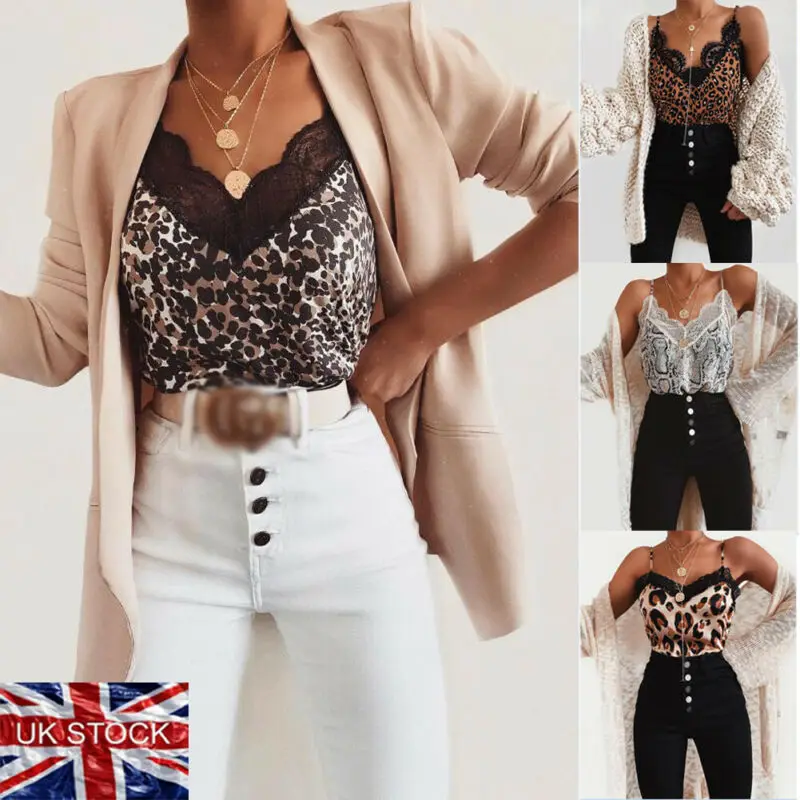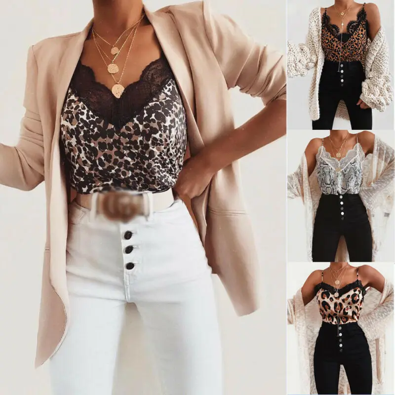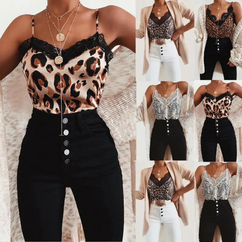 Женский кружевной топ с леопардовым принтом, элегантная майка со зм...