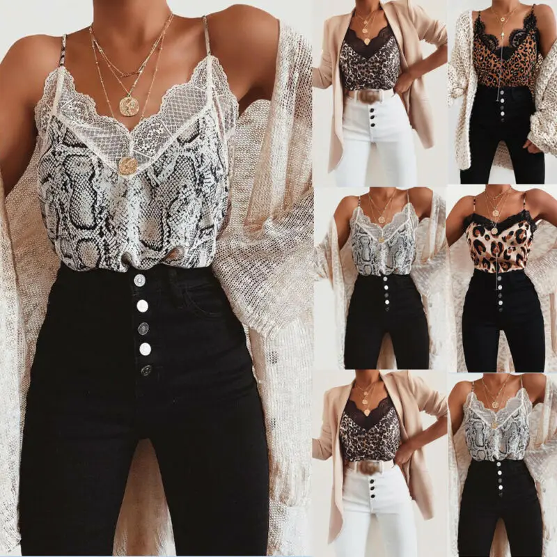 Топ женский кружевной, Леопардовый, со змеиным принтом, с V-образным вырезом