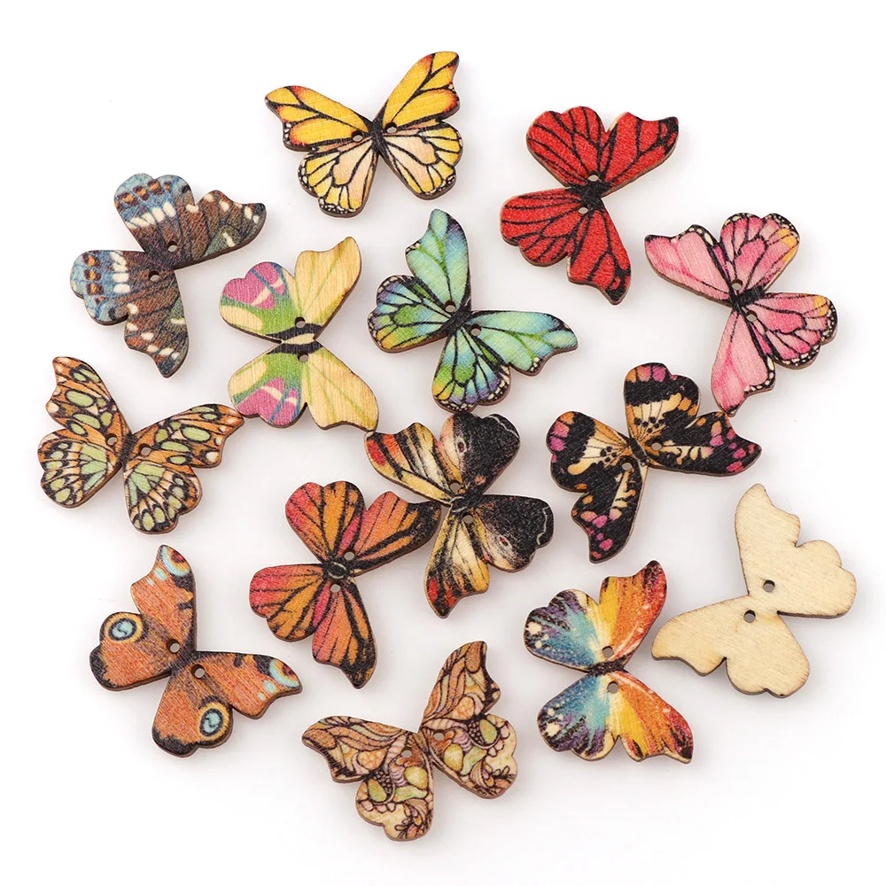 Деревянные пуговицы в форме бабочки, 50 шт., разноцветные пуговицы сделай сам для шитья и скрапбукинга, Швейные аксессуары