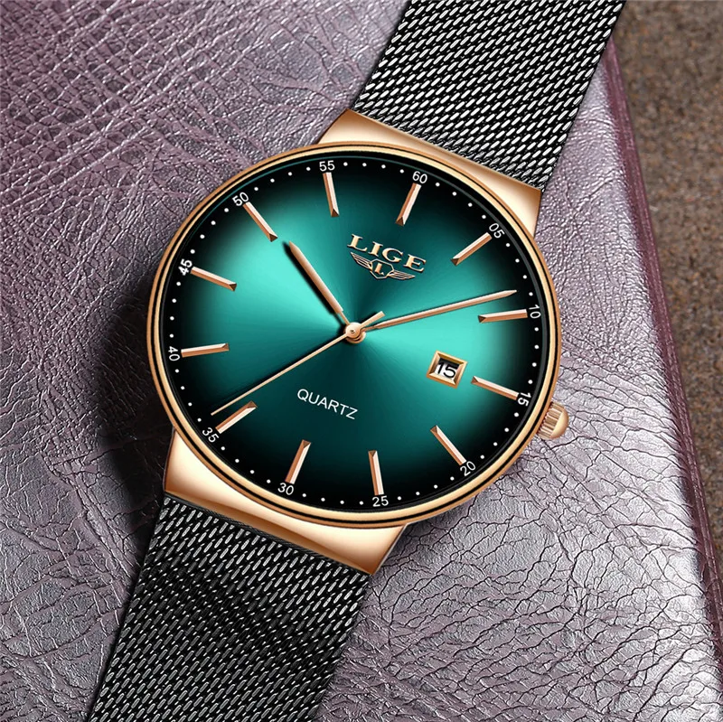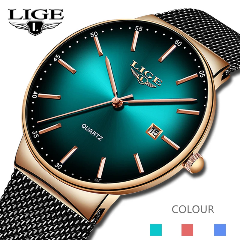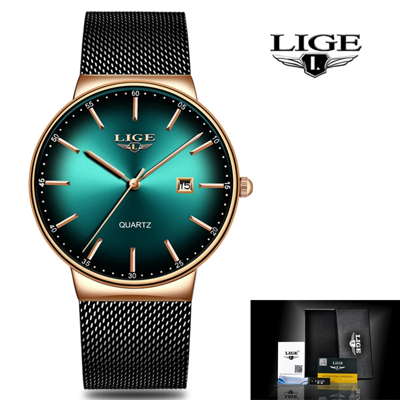 Часы наручные LIGE Мужские кварцевые, спортивные брендовые Роскошные водонепроницаемые Модные крутые с ультратонким циферблатом, с датой