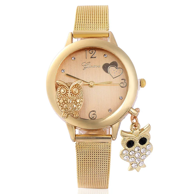 Часы женские кварцевые с подвеской в виде совы, с сетчатым ремешком, 2020