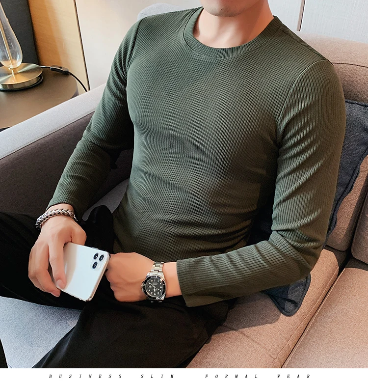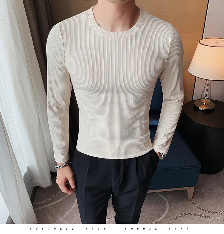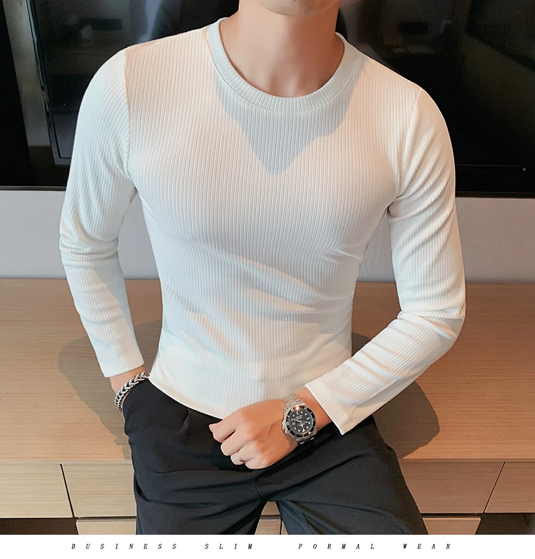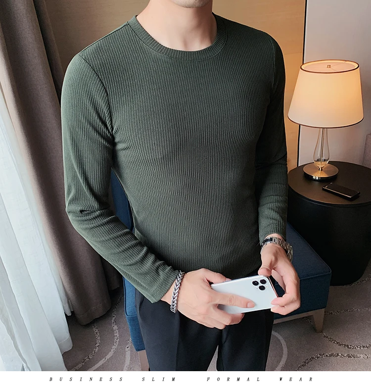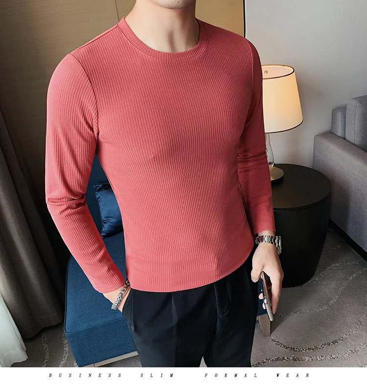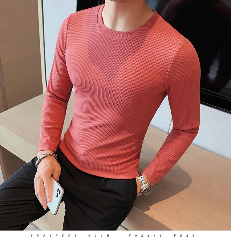 Модная новинка осень-зима 2022, Однотонная футболка с длинным рукавом из вафельной ткани, Мужская одежда, простая приталенная Повседневная футболка для мужчин