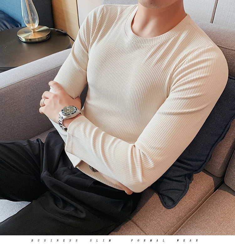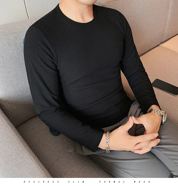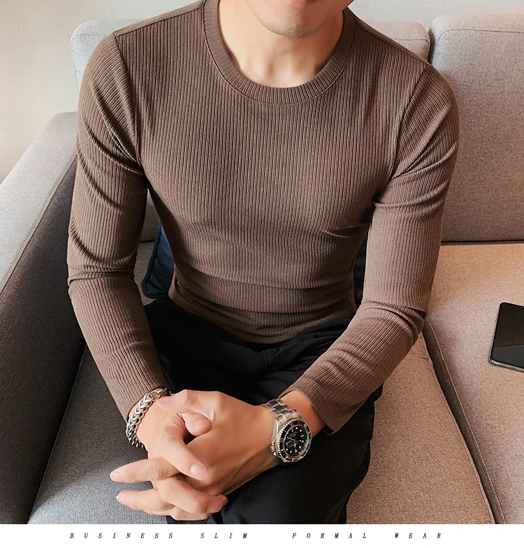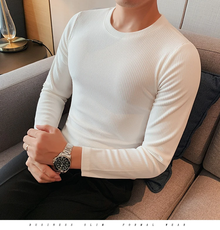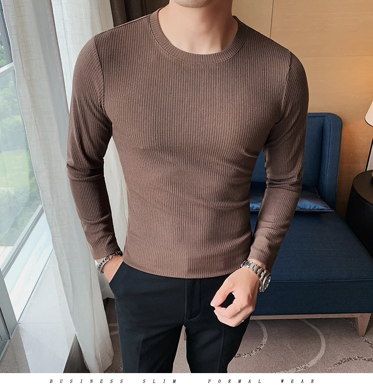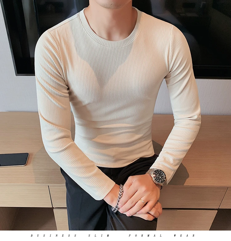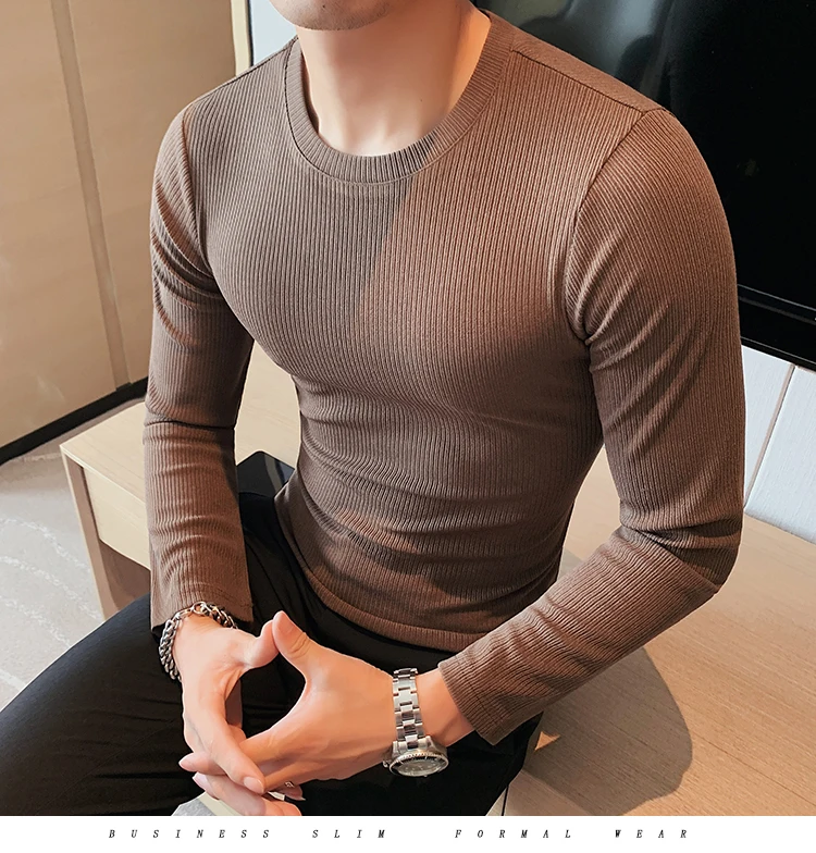 Модная новинка осень-зима 2022, Однотонная футболка с длинным рукавом из вафельной ткани, Мужская одежда, простая приталенная Повседневная футболка для мужчин