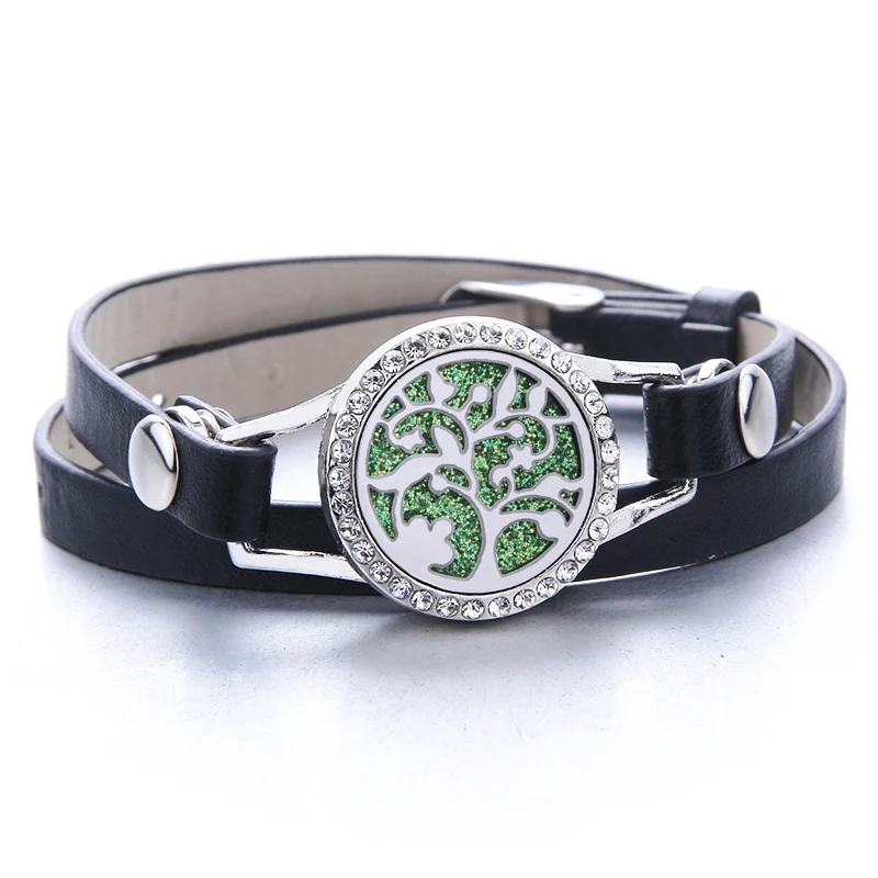 Браслет для ароматерапии древо жизни, ювелирные изделия, Хрустальный диффузор эфирного масла, медальон, браслет, закручивающийся браслет из ПУ кожи