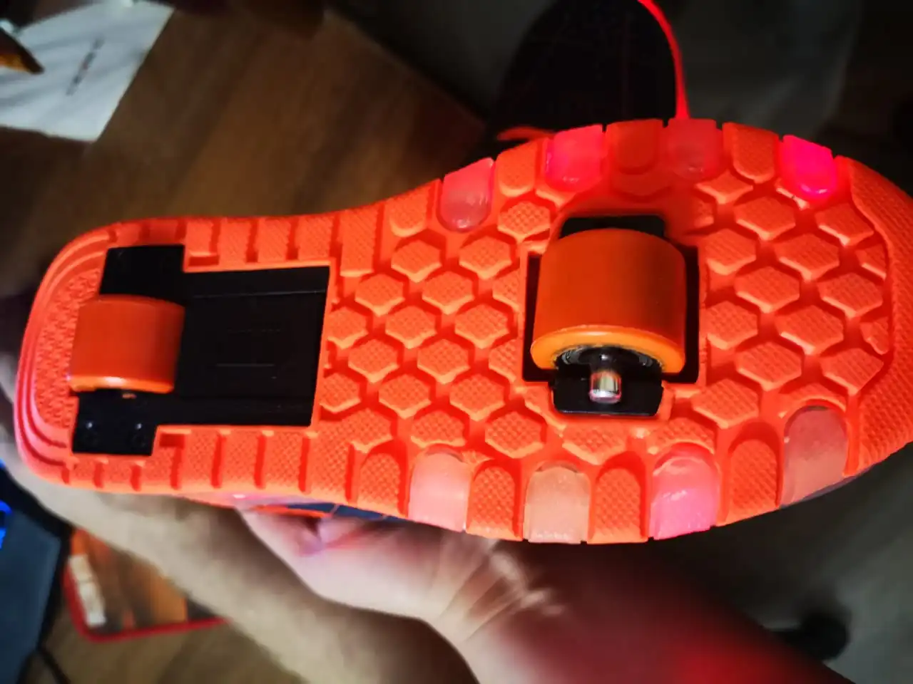 Неплохие кроссовки на вид. Немного маломерят. Колесики вставляются. можно убрать и носить как обычные кроссы. Кататься еще не пробовали. Фонарики на подошве горят, все супер. в комплекте зарядка
