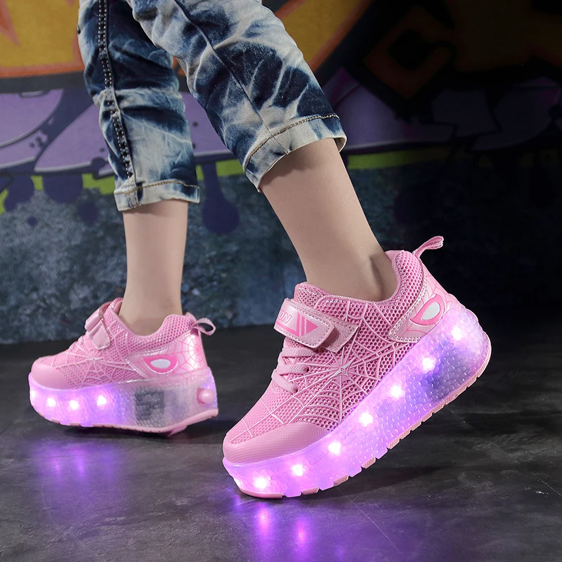 Детские кроссовки на роликах со светодиодной подсветкой, светящиеся кроссовки-колесики, зарядка через USB, для мальчиков, Размеры 29-39