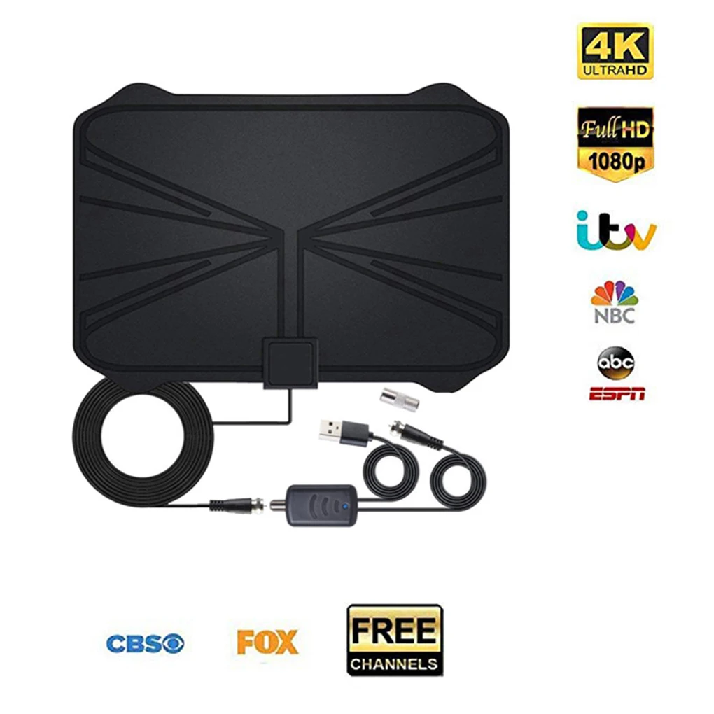 Цифровая антенна 4K HDTV, комнатная усиленная антенна, радиус действия 1180 миль HD1080P DVBT2 Freeview TV