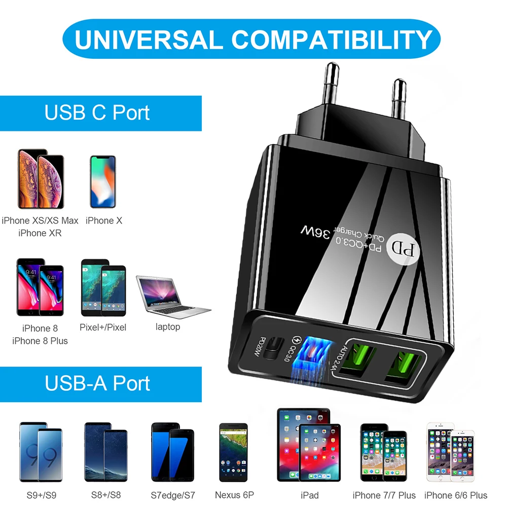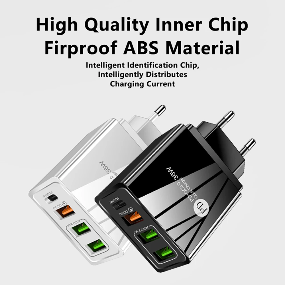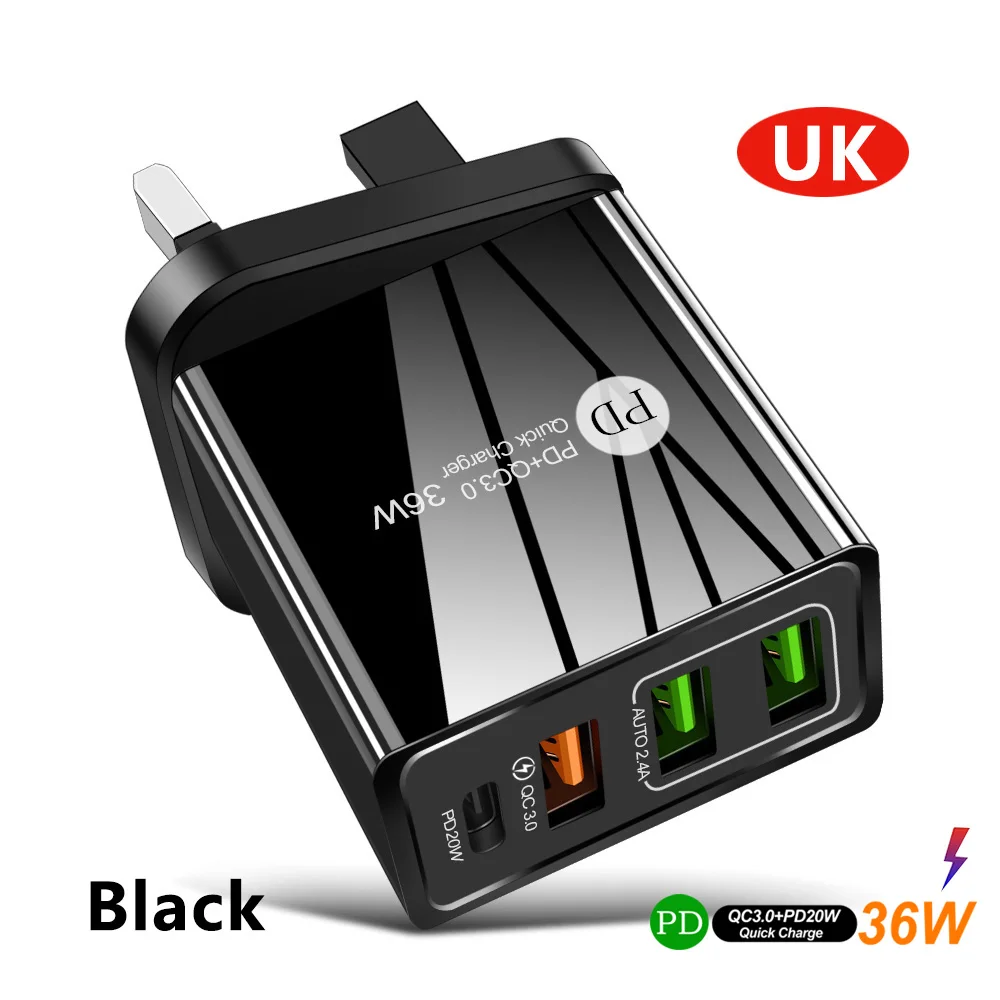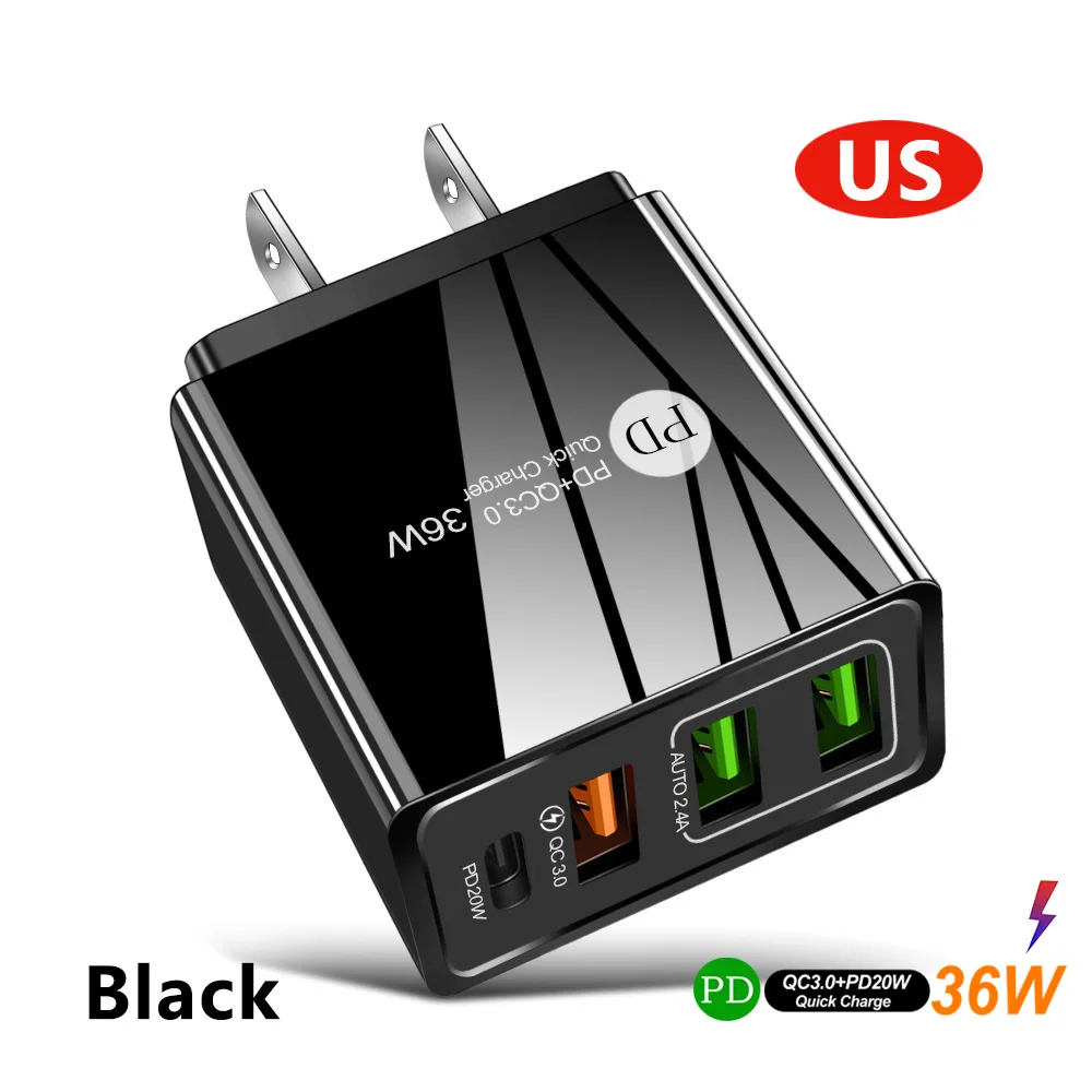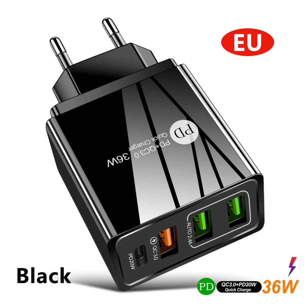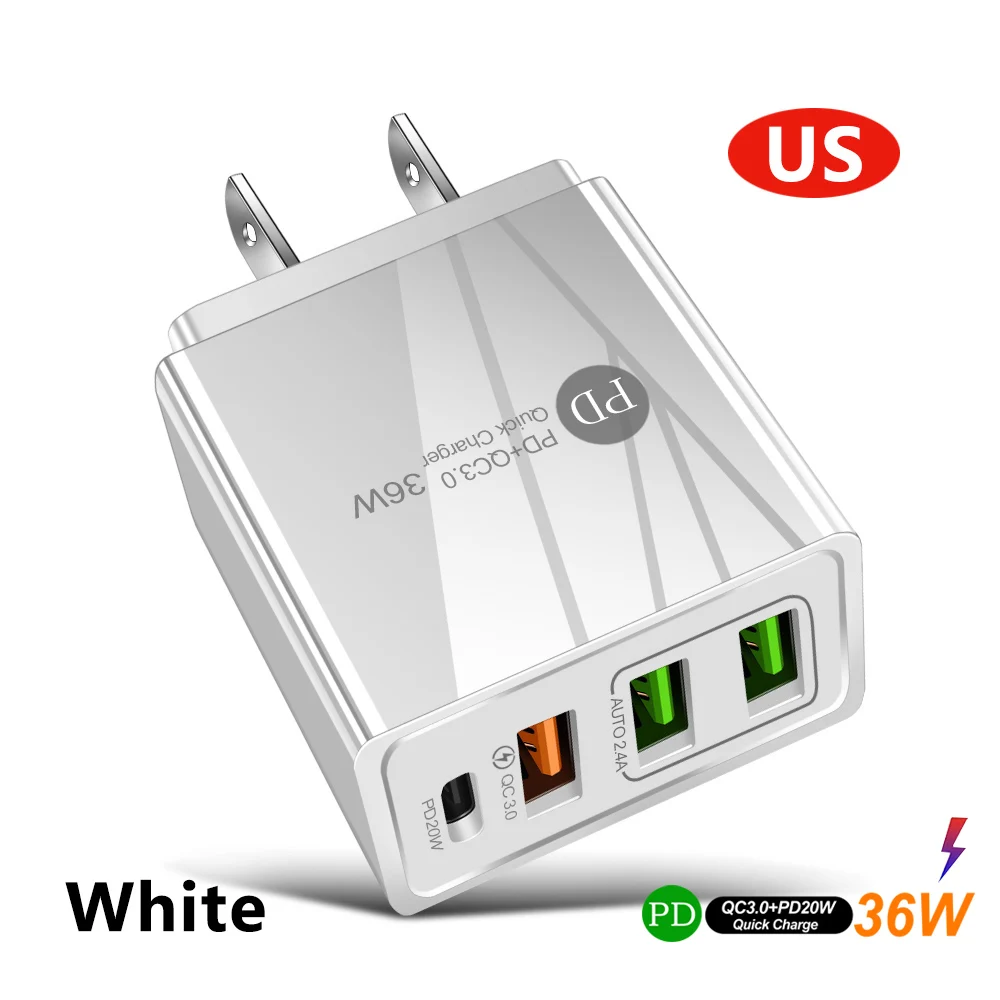 Зарядное устройство USB PD, 36 Вт, быстрая зарядка QC3.0 USB для iP...