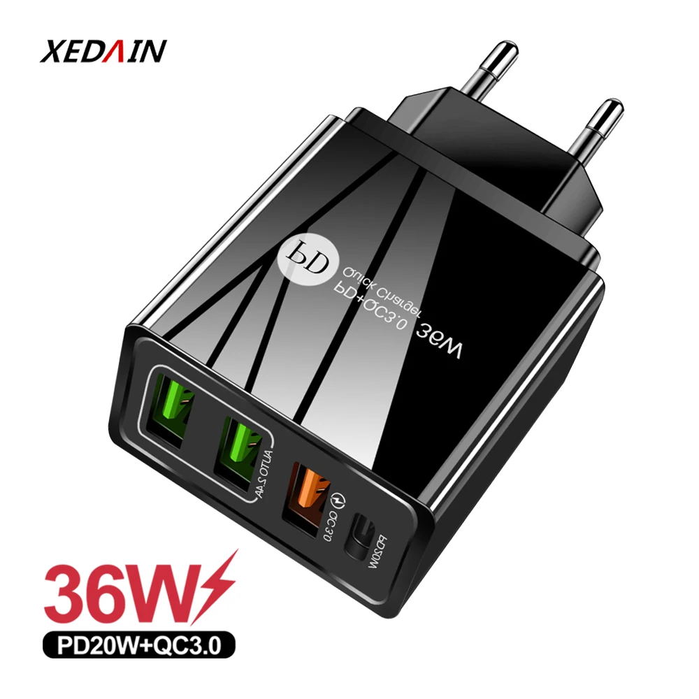 Зарядное устройство USB 36 Вт, быстрая зарядка 3,0, Тип C PD 20 Вт,...