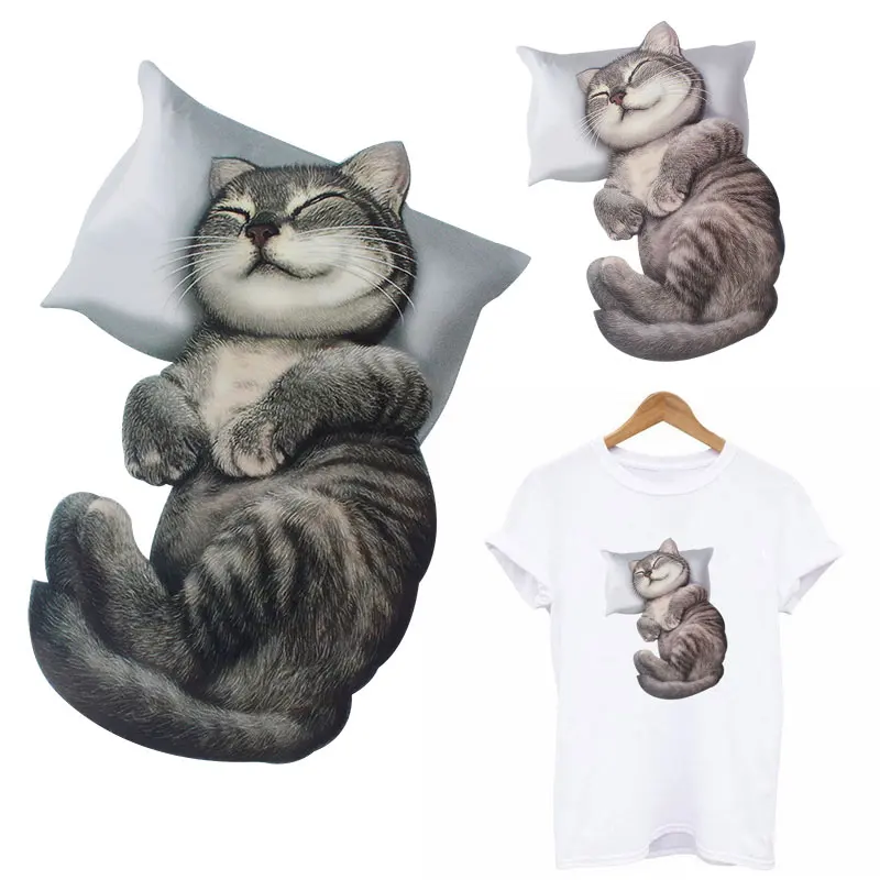 Термоклейкие нашивки с изображением мультяшных кошек и животных для одежды, милая кошка для детей, тканевые полоски, Аппликации, термотрансферные искусственные