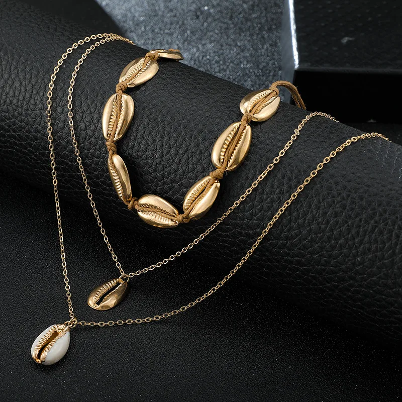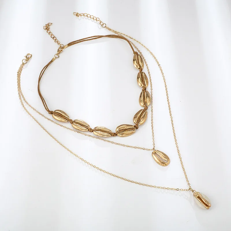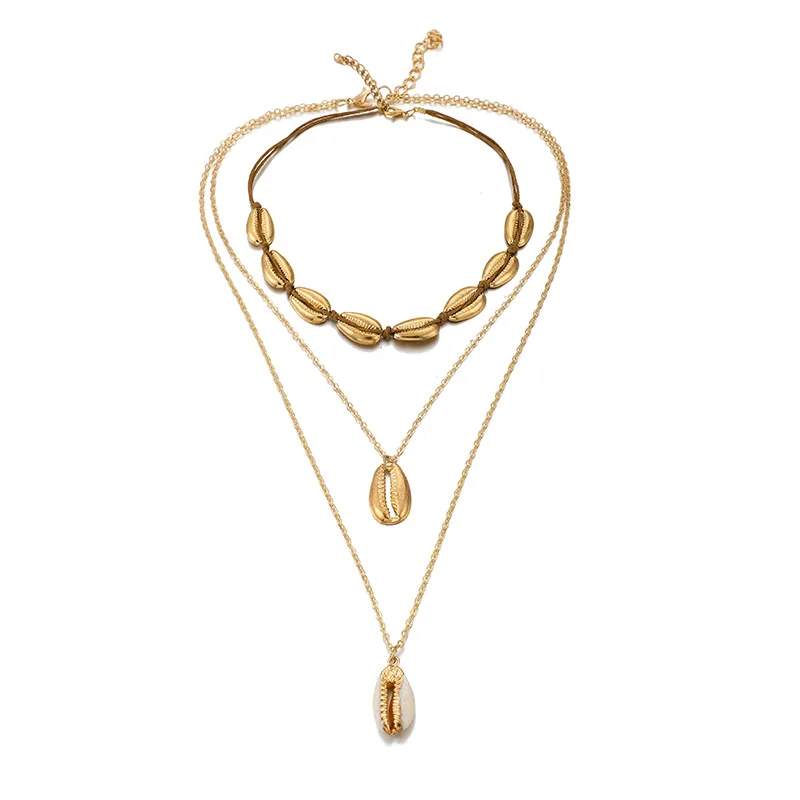 Новинка 2020, богемное ожерелье в стиле бохо из ракушек, Пляжное ожерелье для отпуска, многослойное женское ожерелье из сплава, цепочка на шею, ювелирные изделия, золотая цепочка