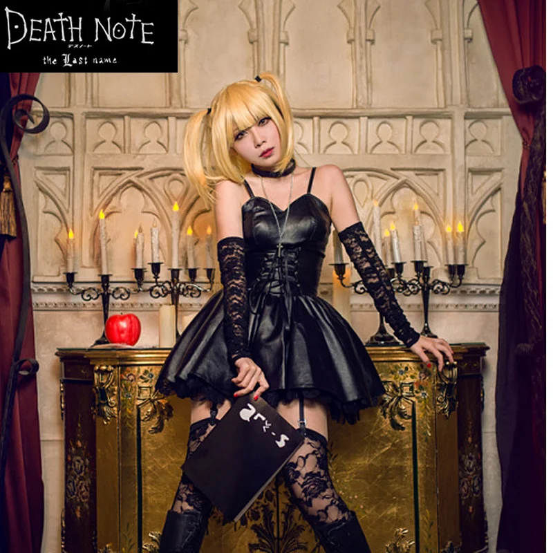 Death Note Misa Amane, имитация кожи, сексуальные топы без рукавов, кружевное платье, Униформа, наряд, аниме, костюмы для косплея