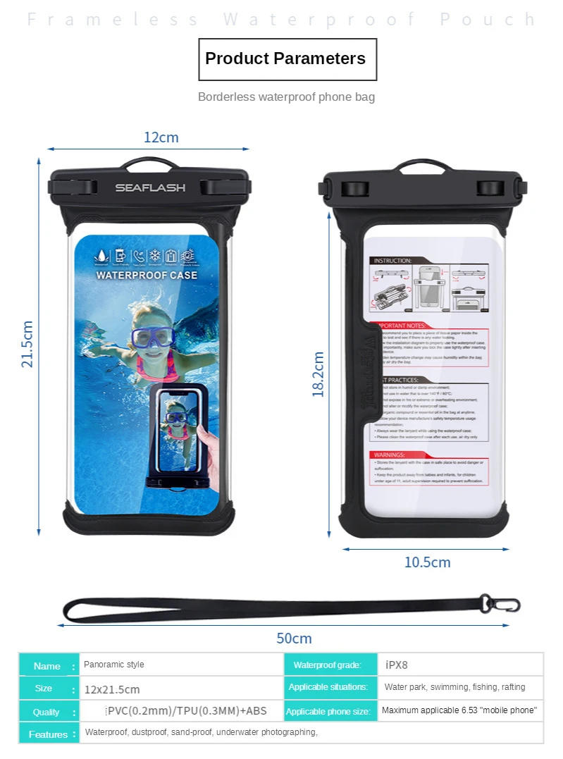 Полный вид IP68 водонепроницаемый телефонный кейс для Samsung Galaxy прозрачный кейс сухой мешок для подводного плавания сумка для купания для iPhone 11 Pro Max 6,9 дюймовый мобильный телефон сумка