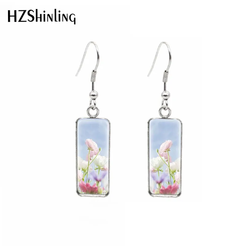 Серьги прямоугольные с цветами, цветами, цветными поднимающими наст...