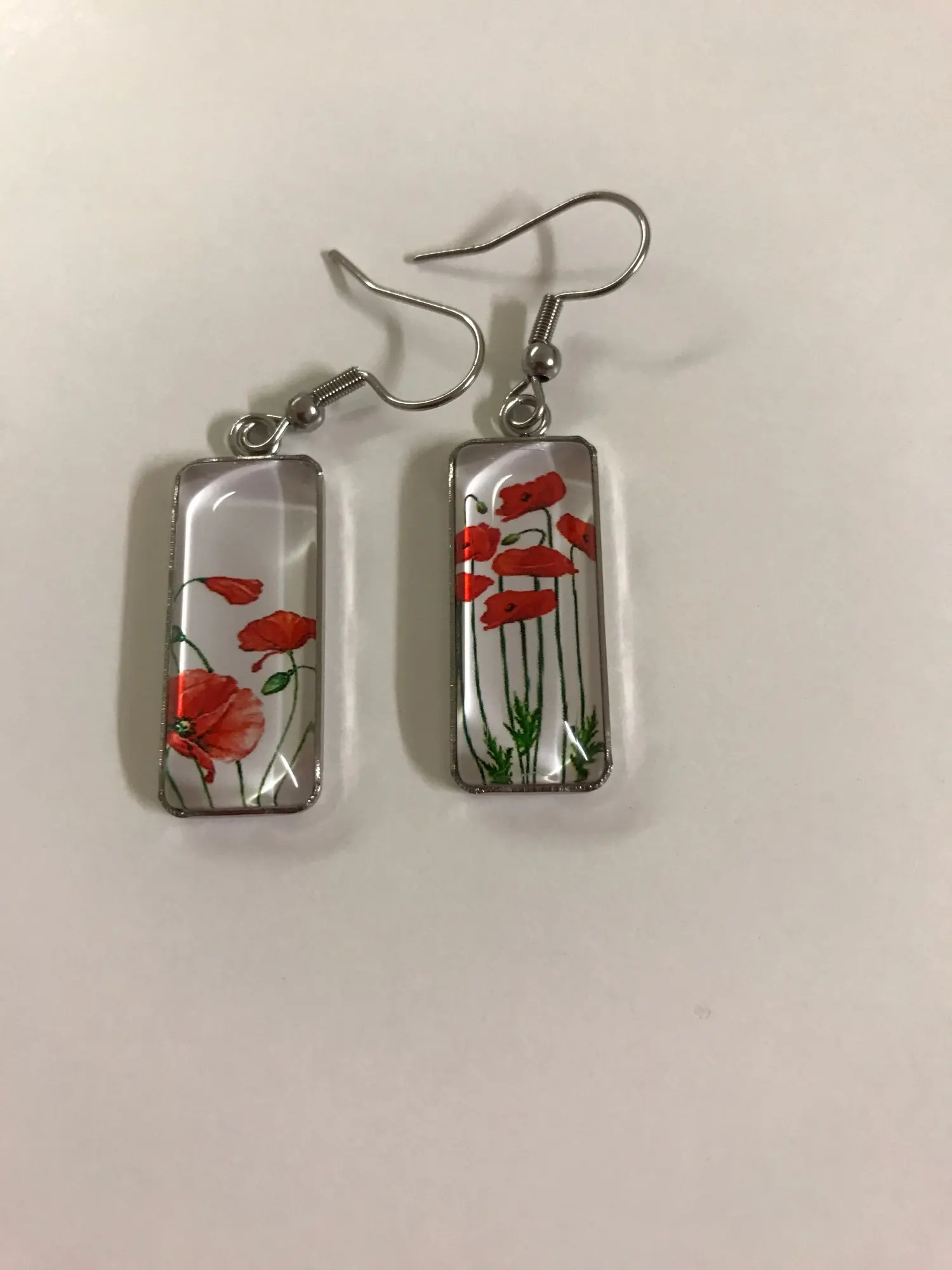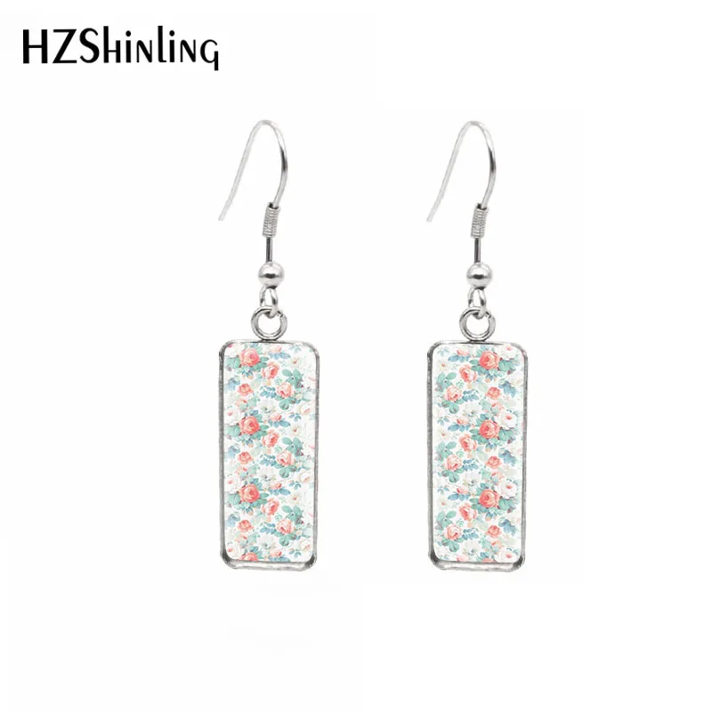 Серьги-Крючки с красной розой, прямоугольные, с цветами, для рукоде...