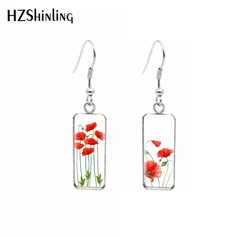 2019 новые красные синие цветы прямоугольные серьги Маки искусство ...
