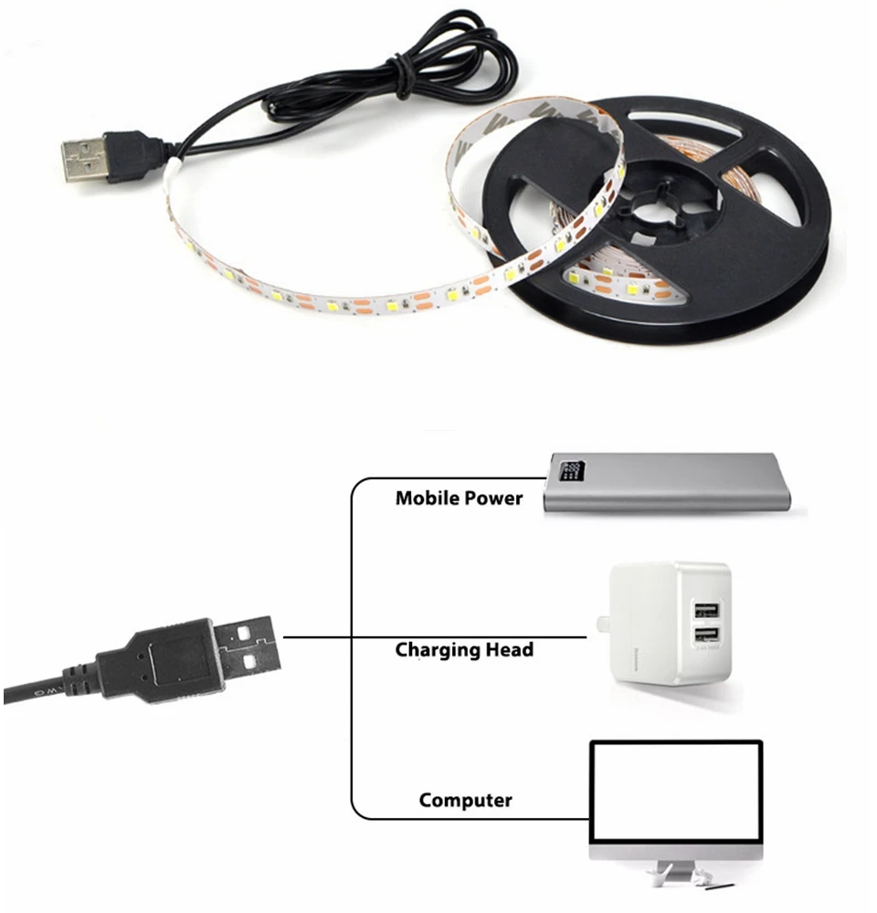 Светодиодная лента, не Водонепроницаемая RGB подсветка 2835SMD для ТВ HD ТВ с USB, 5 В, 0,5 м, 1 м, 2 м, 3 м, 4 м, 5 м