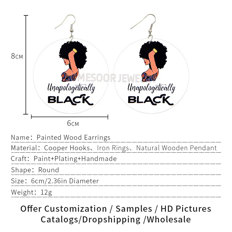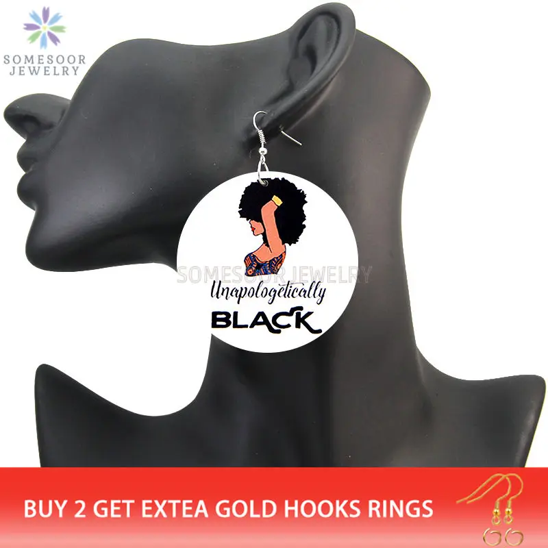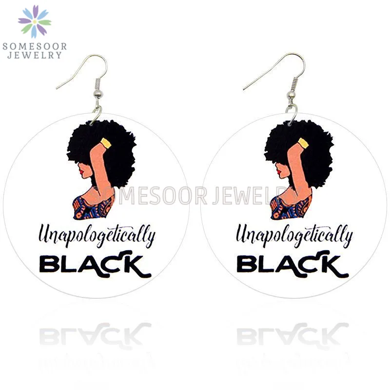 SOMESOOR Необычные черные афро натуральные волосы деревянные висячие серьги меланин Poppin Искусство Печать Висячие ювелирные изделия для женщин подарок