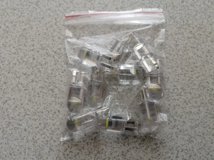 Товар пришёл за две недели до Кирова Кировской области. Все десять диодов проверил, все рабочие, заказывал чисто белые на габариты для Peugeot 607 и на заднюю подсветку номера, горят все. Есть плюс и минус, если диод по другому поставить, то светиться не будет. Как поставлю на машину, то отзыв дополню.