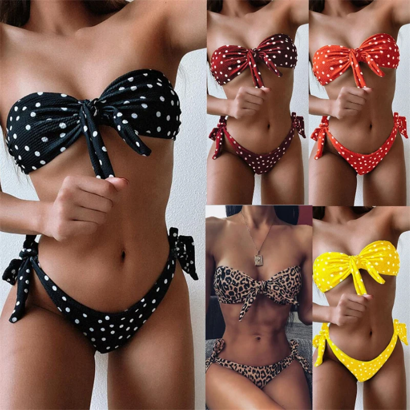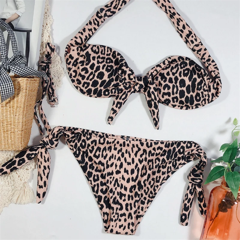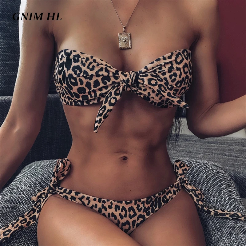Купальник-бикини GNIM Женский, бандажный купальник с леопардовым принтом, пикантный купальный костюм из двух предметов, пляжная одежда с бантом, лето 2020