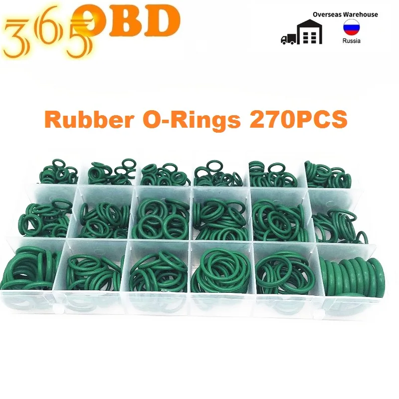 Комплект уплотнительных колец из зеленой резины, 18 размеров, 270 шт.лот, зеленые метрические уплотнения, Нитриловое уплотнительное кольцо для кондиционера R22R134a, Ремонтное уплотнение компрессора