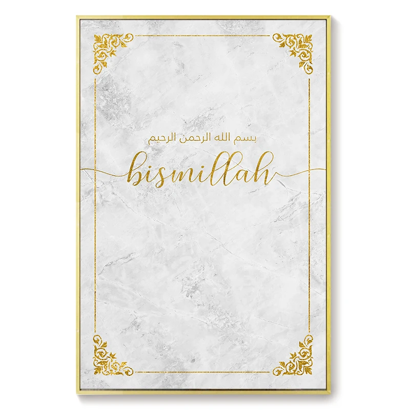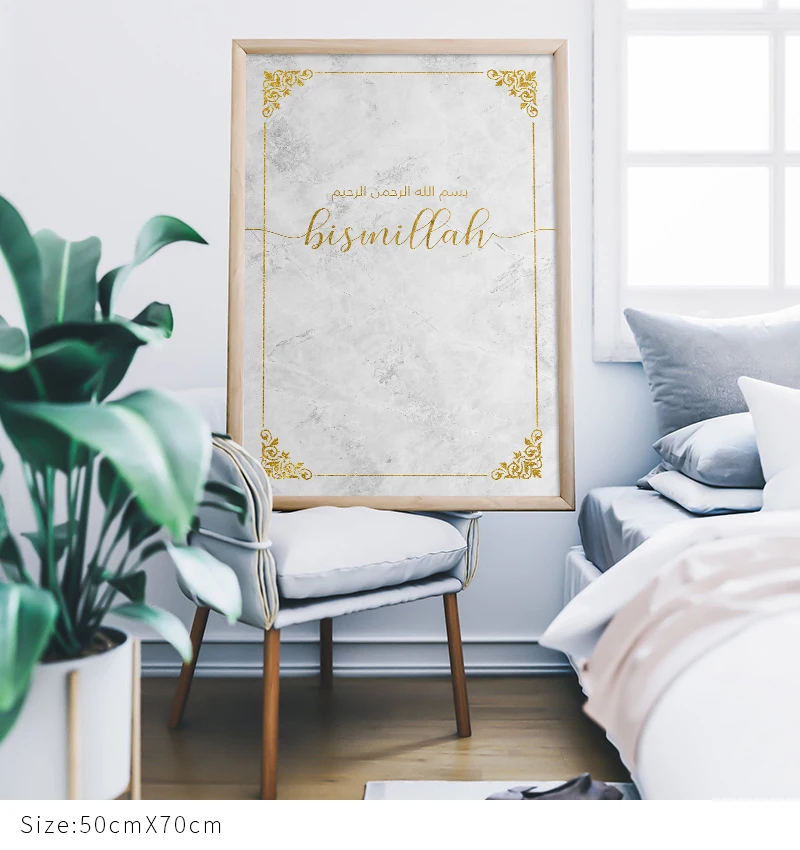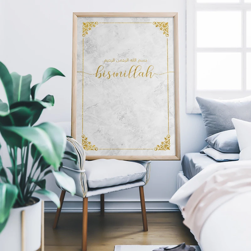 Настенный плакат на холсте с мусульманскими цитатами аллах бисмиллах, простой минималистичный современный домашний декоративный рисунок