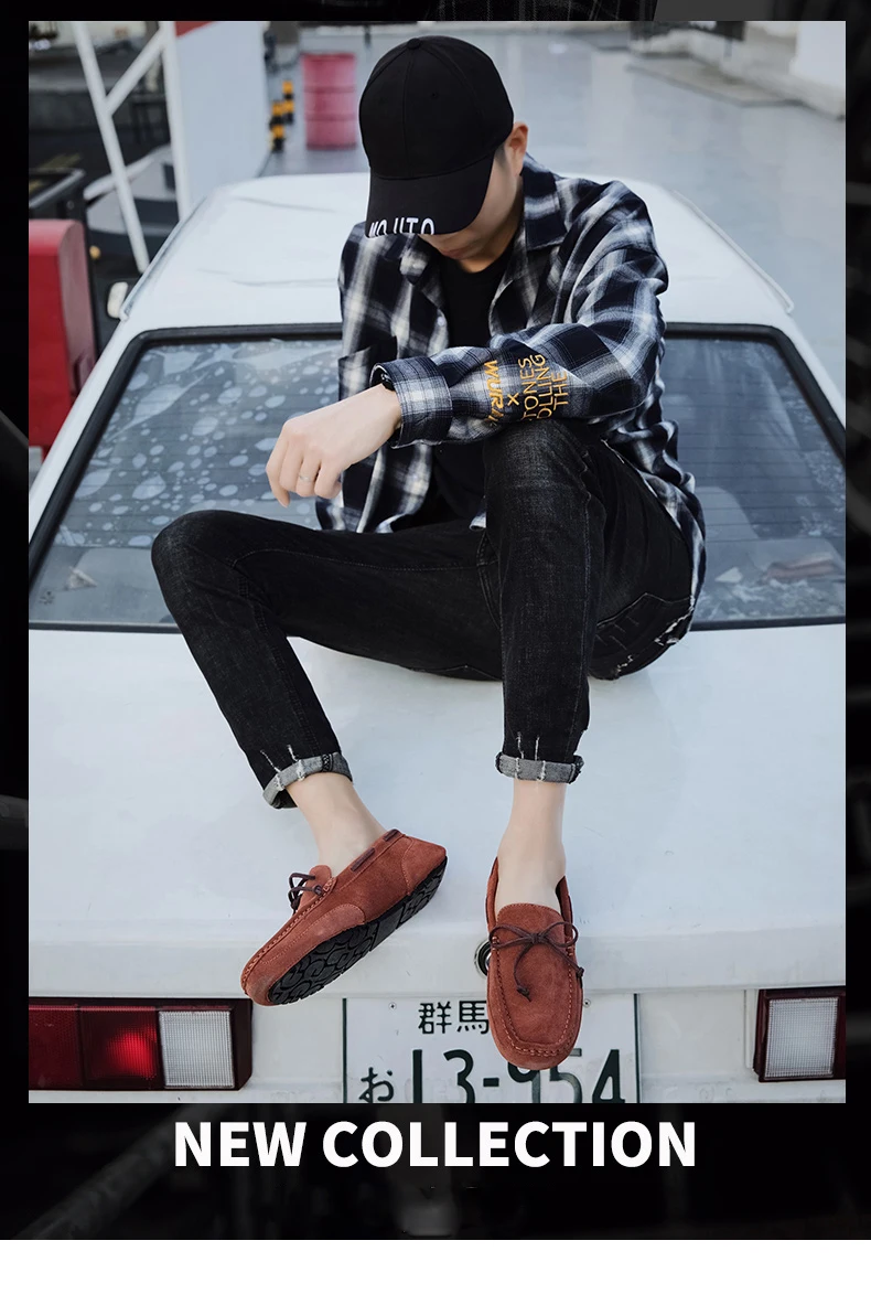 Оригинальные кожаные туфли-лодочки Лоферы мужские мокасины высокого качества роскошные мужские мокасины из мягкой замши Мужская обувь для вождения, Мужская большая Размеры